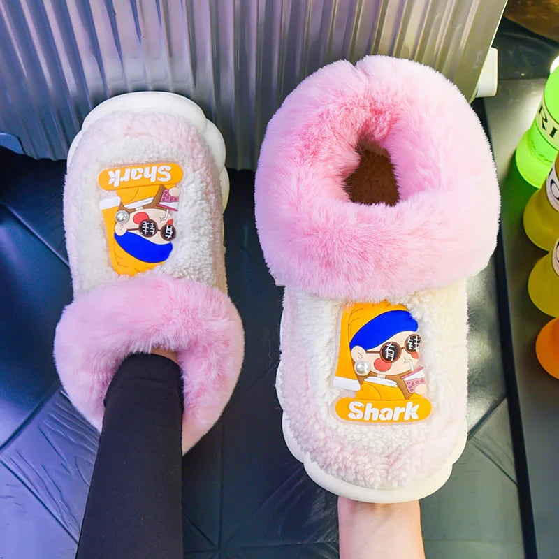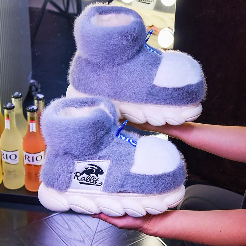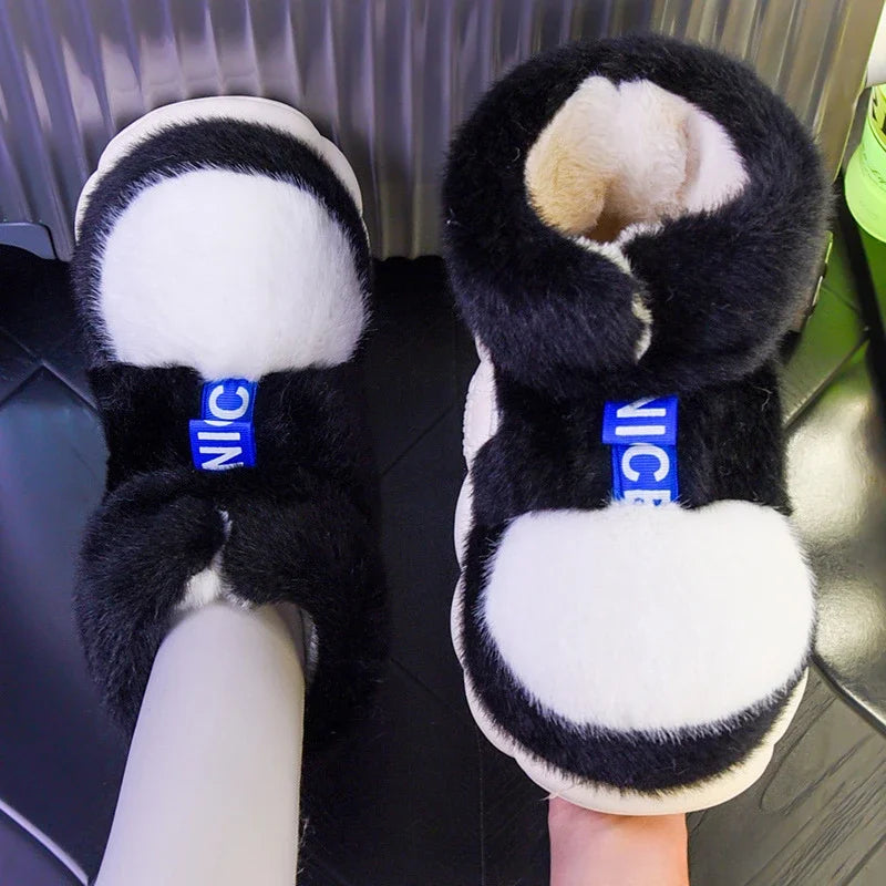 Women Winter Warm Shoes Plush Lining Indoor Cotton Slippers Couple Platform High