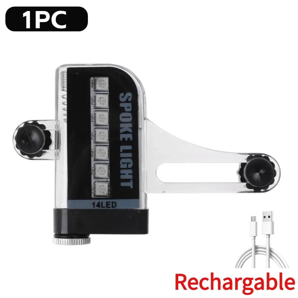 USB Rechargeable 14 RGB LED Cycling Bicycle Wheel Signal Tire Spoke Light Mountain Road Bike Safety Warning Lamps