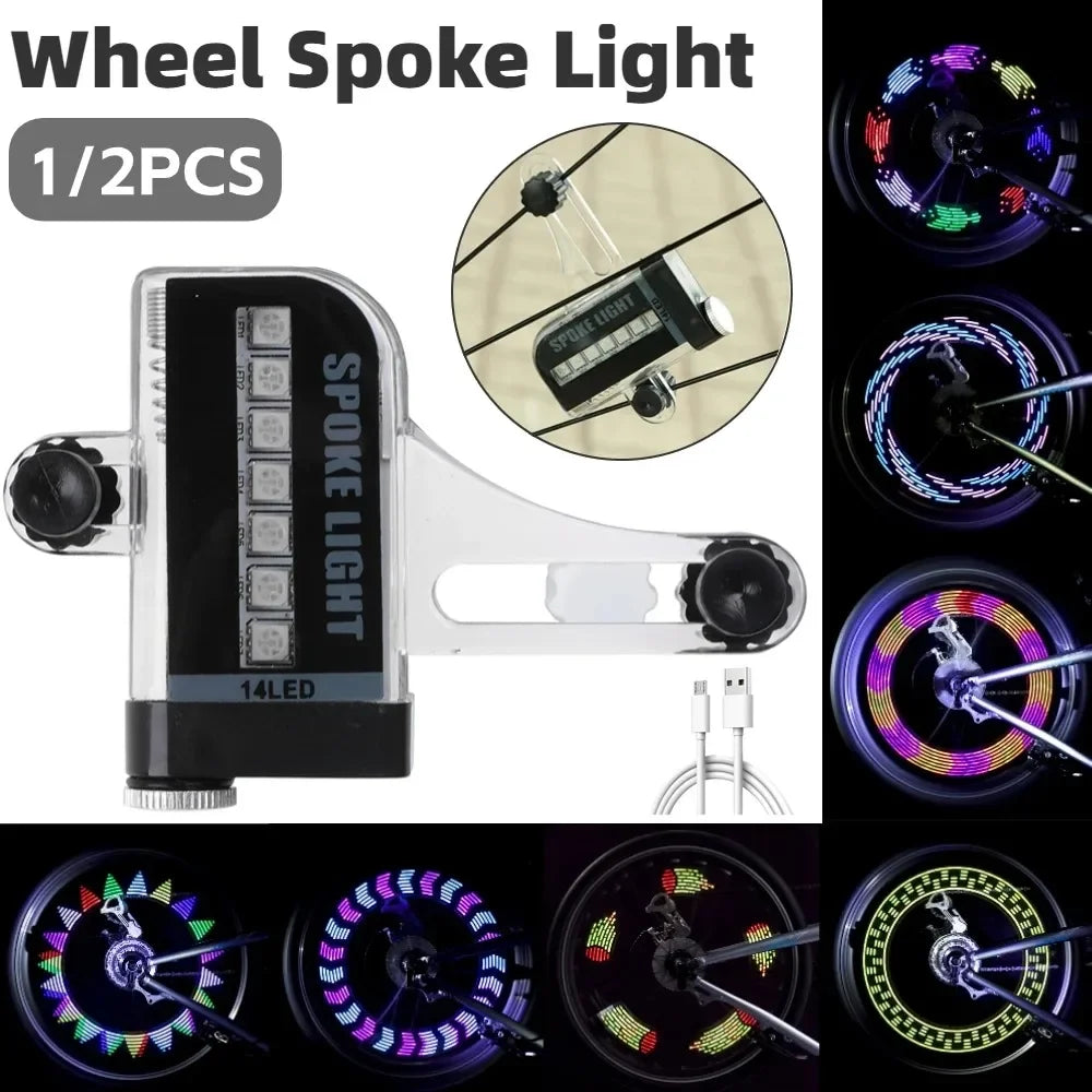 14 RGB LED Neon Bicycle Wheel Spoke Light Rechargeable Waterproof Mountain Road Bike Color Safety Warning Lamp Bicycle Access