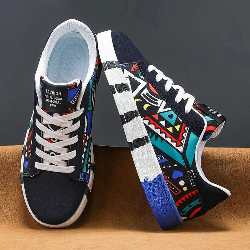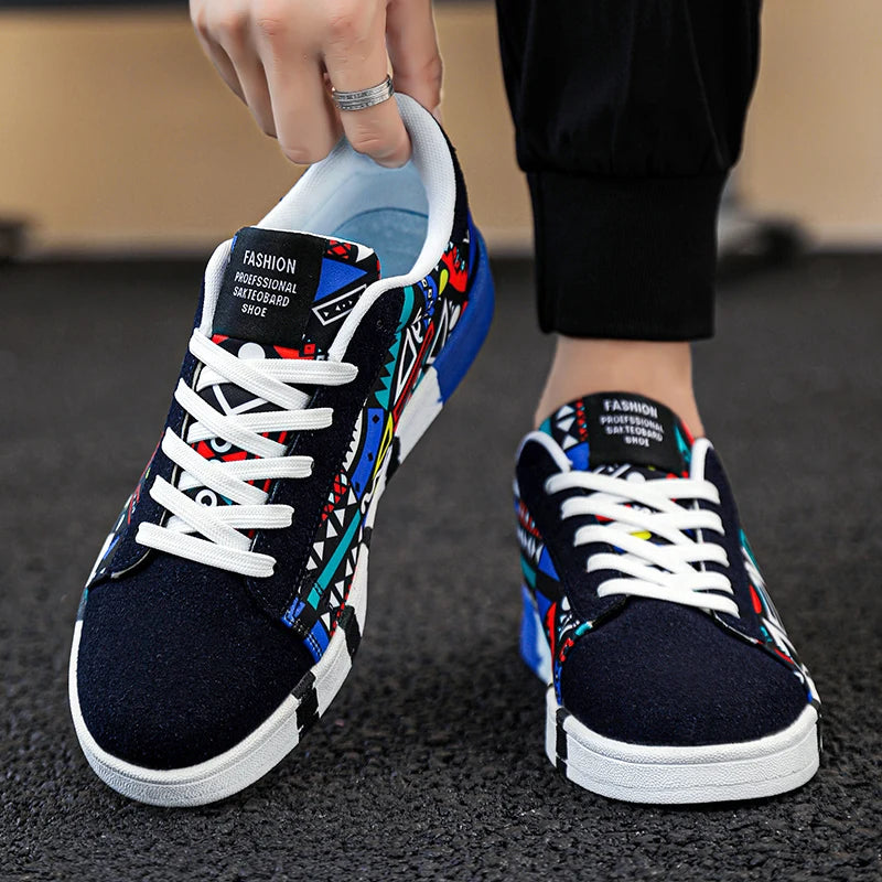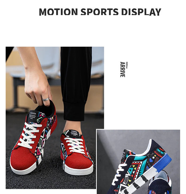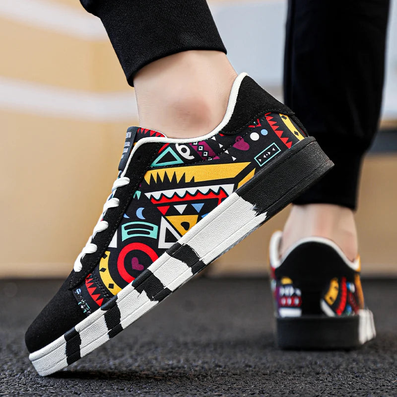 Men s Vulcanized Shoes Fashion Graffiti Print Canvas Shoes Outdoor Non slip