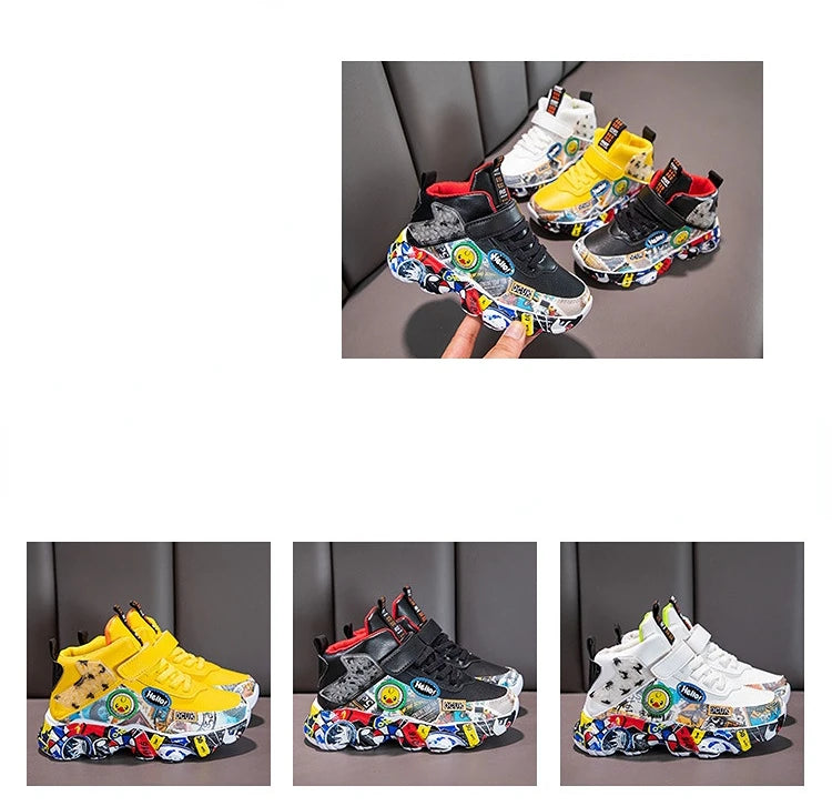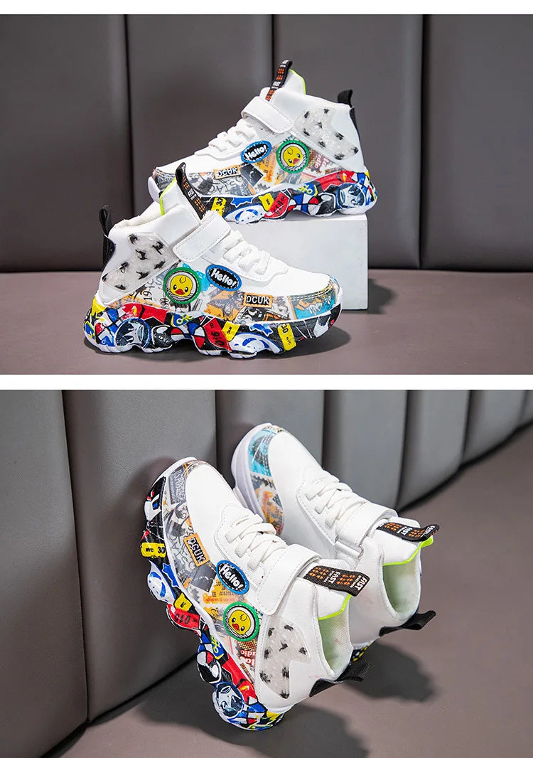 Size 26-36 Children Sports Sneakers for Girls Kid Cartoon Graffiti Pattern Casual Shoes Boys Basketball S...