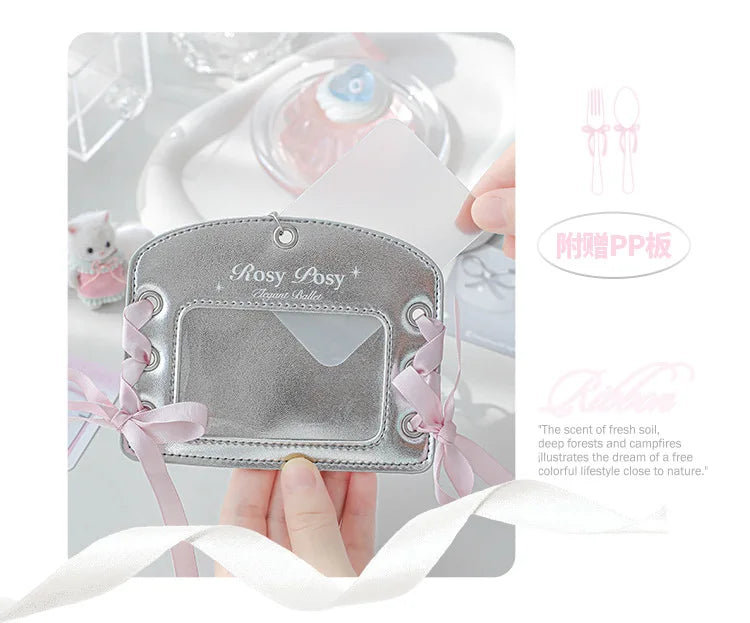 Ins Korean Style Lace-up Leather Card Holder Bus Card Bank ID Card Protective Display Sleeves Girl Bag Pe...
