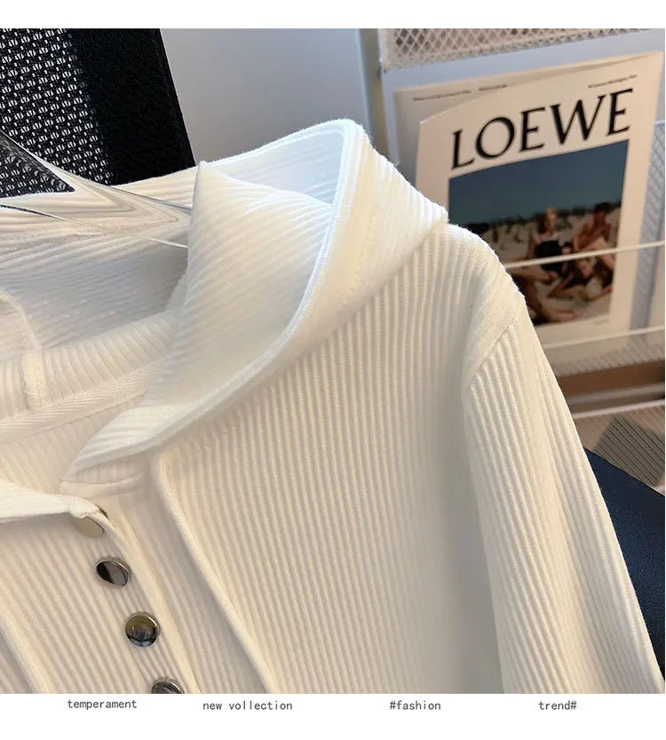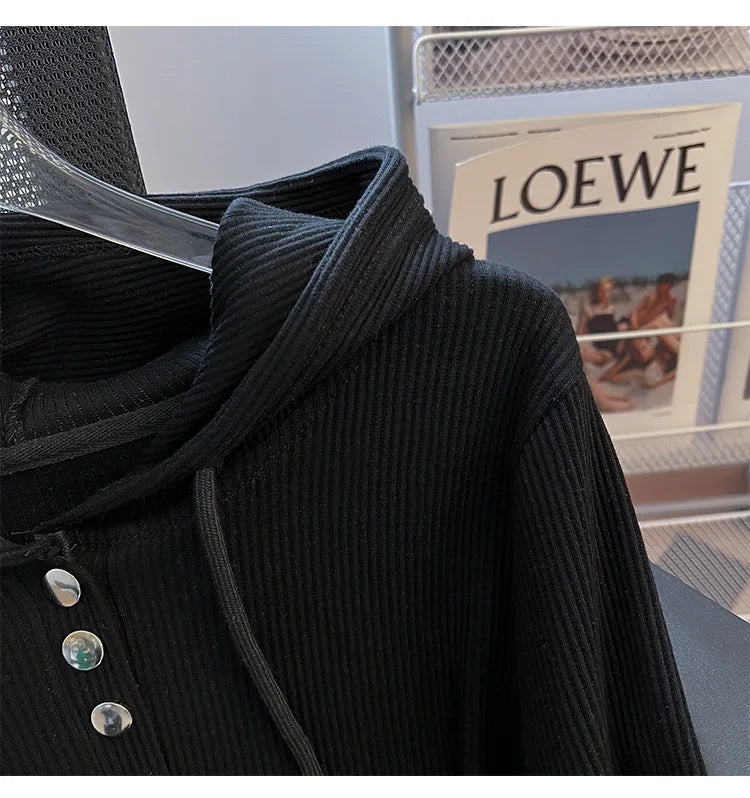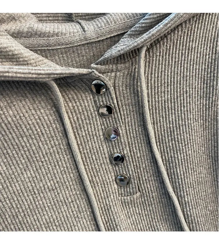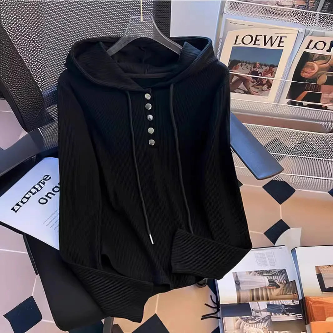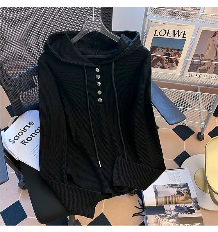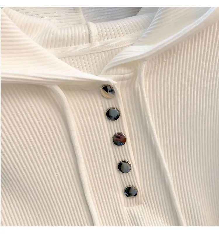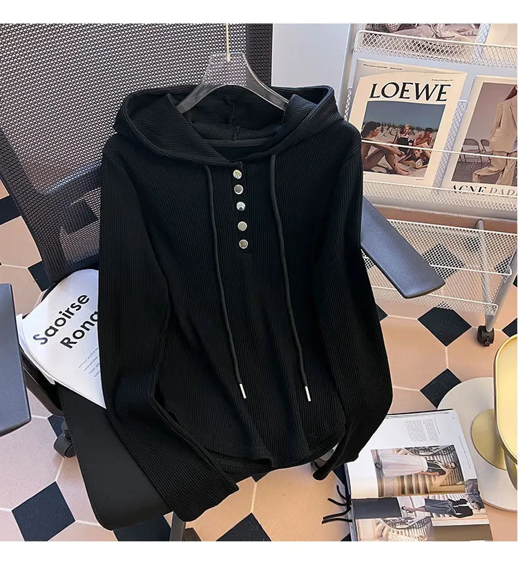 Unique Buttoned Hooded T Shirt Women s Spring Autumn Irregular Short Sleeve L...
