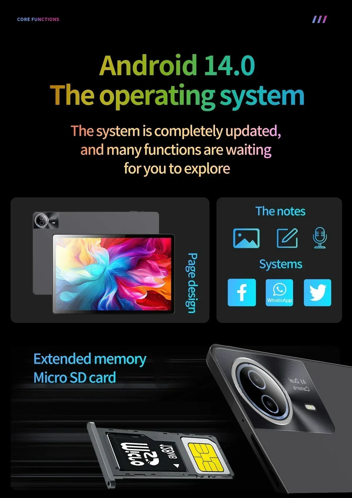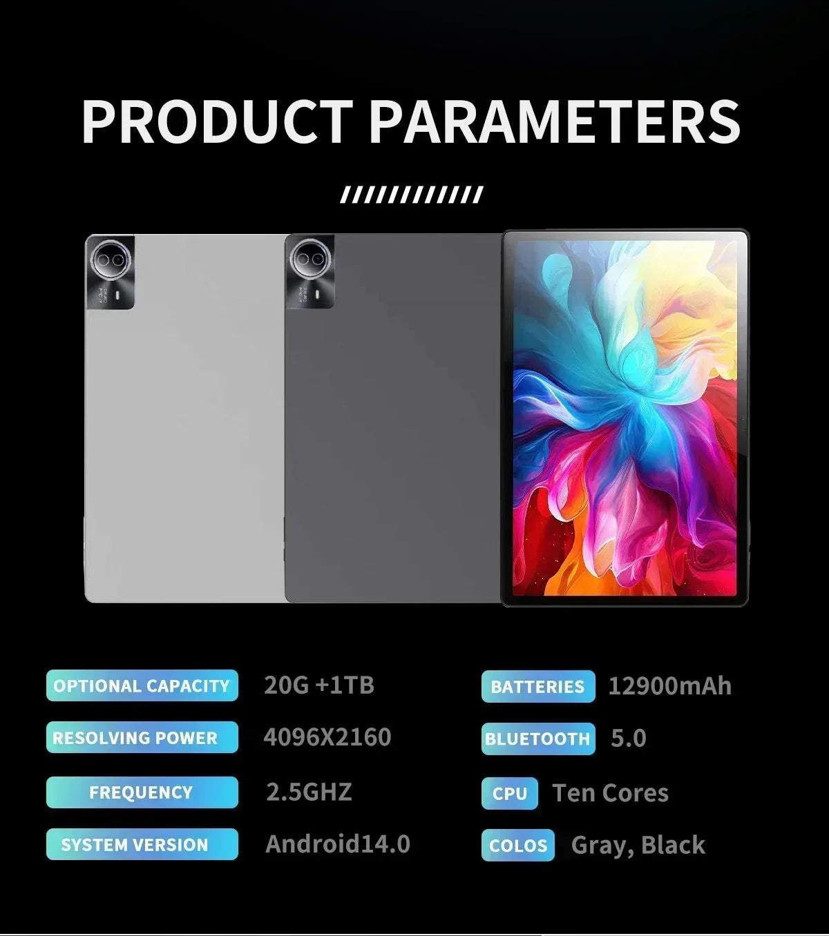 2024 Tablet PC Android 14.0 Brand New 14 inch 16GB RAM 1TB ROM Tablet 20MP 50MP 129000mAh 10Core WIFI Bluetooth Network Tablet