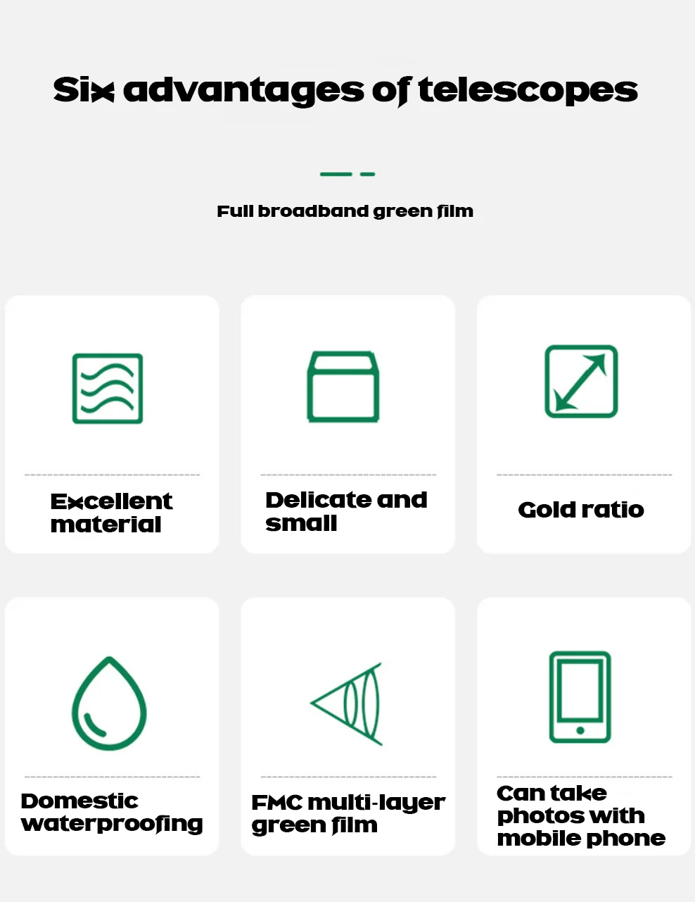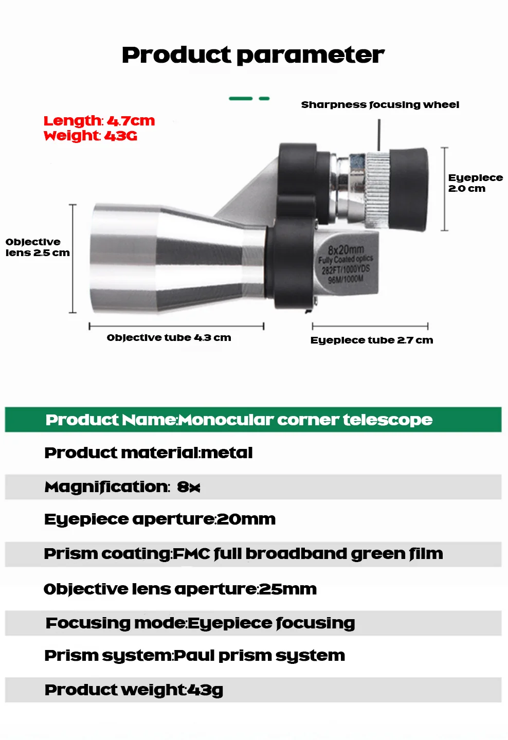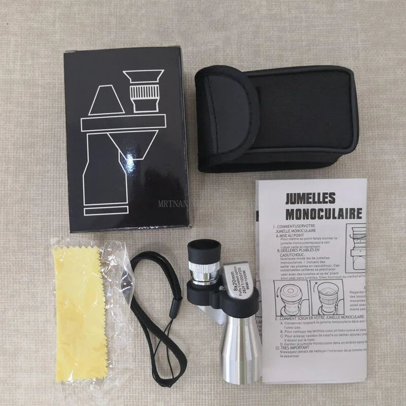 Package Included: 1 x 8x20 Monocular Telescope 1 x Cleaning Cloth 1 x Sling+ Storage Package