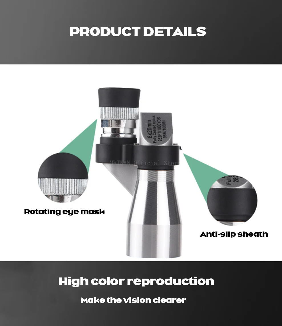 8x20 HD Mini Pocket Zoom Monocular Outdoor Portable Telescope for Hunting Camping Mountaineering Hike Birdwatching