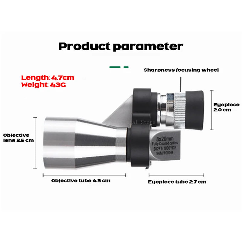 8x20 HD Mini Pocket Zoom Monocular Outdoor Portable Telescope for Hunting