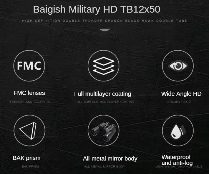 Baigish 12x50 Binoculars Full Metal Telescope Life Waterproof Large View