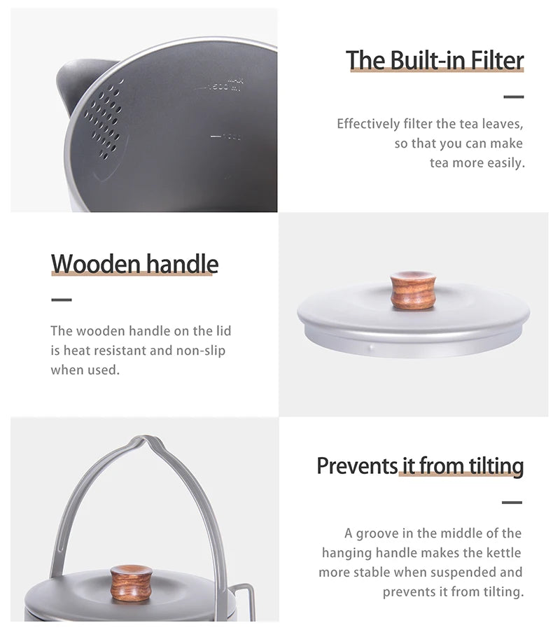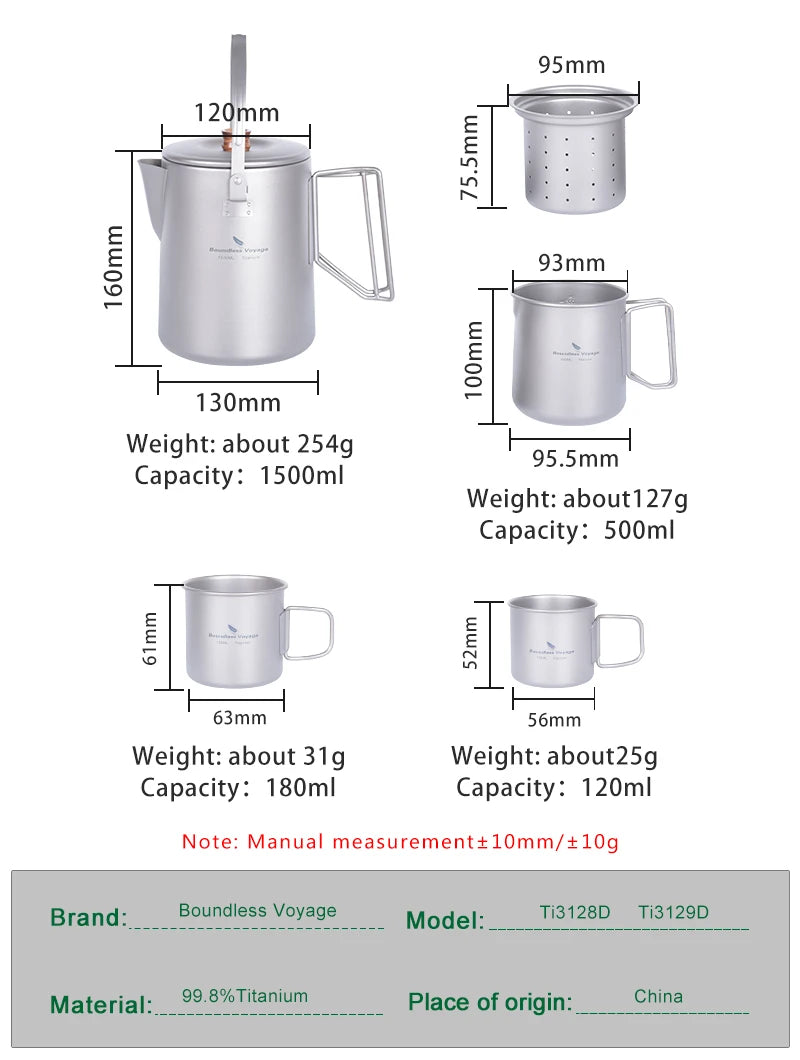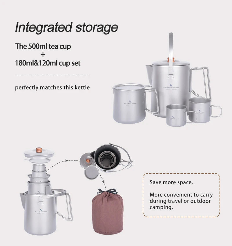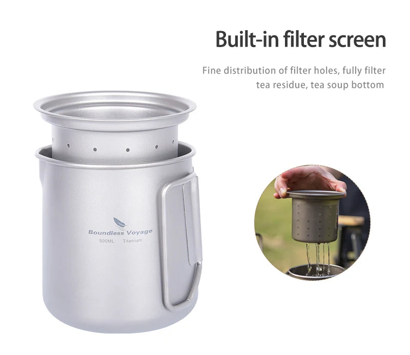 Boundless Voyage 1.5l Titanium Kettle Camping Coffee 500ml Tea Pot Coffee