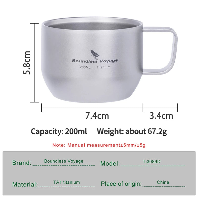 Boundless Voyage 200ml Titanium Espresso Coffee Cup Double Wall Mug for Latte