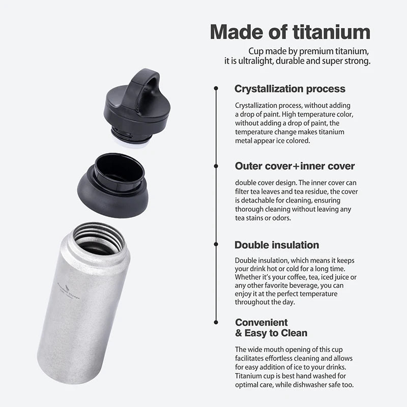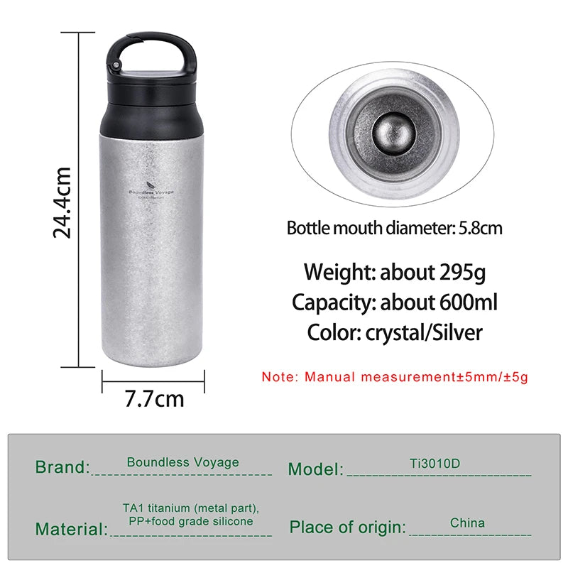 Boundless Voyage 600ml Titanium Vacuum Flask Double Walled Insulated Bottle