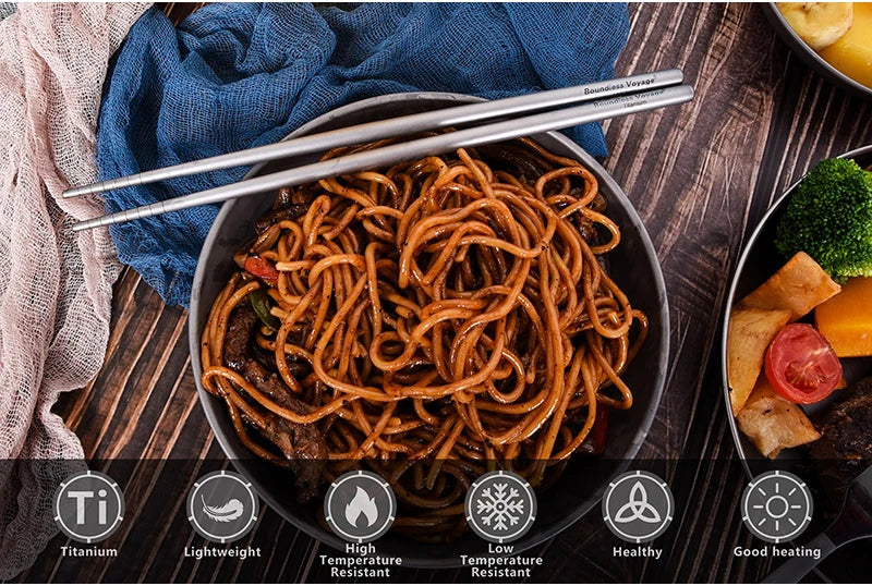 Boundless Voyage Titanium Chinese Chopsticks Ultralight Non Slip Food Square