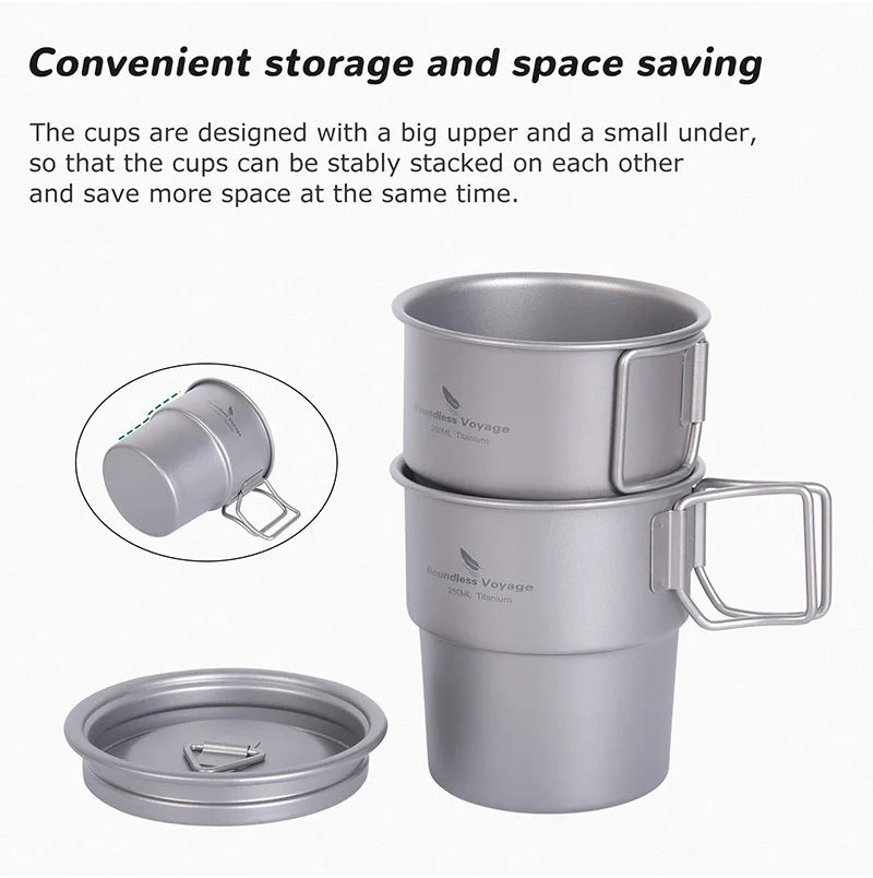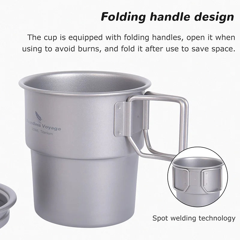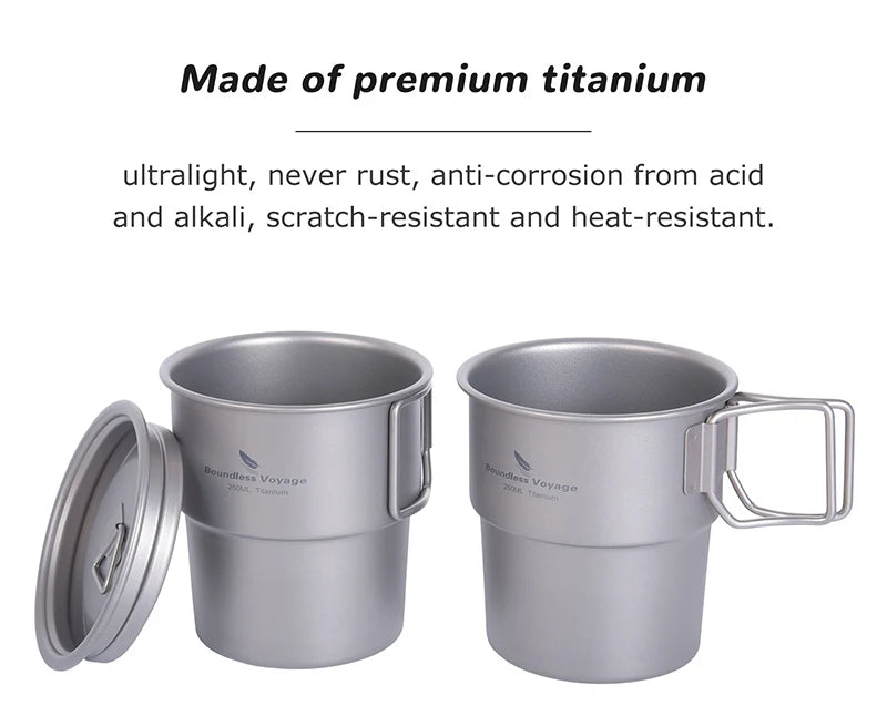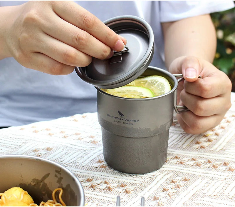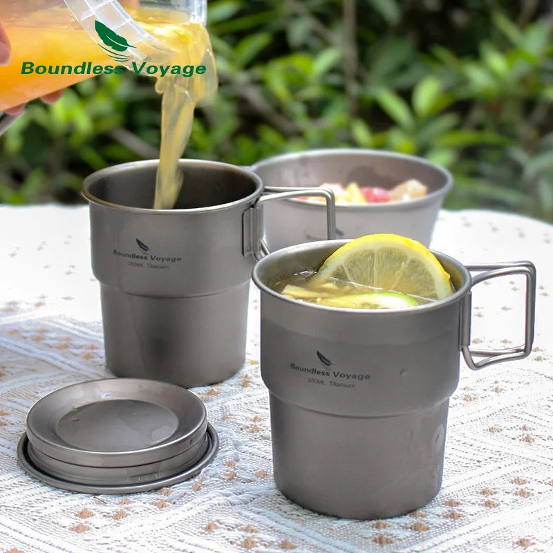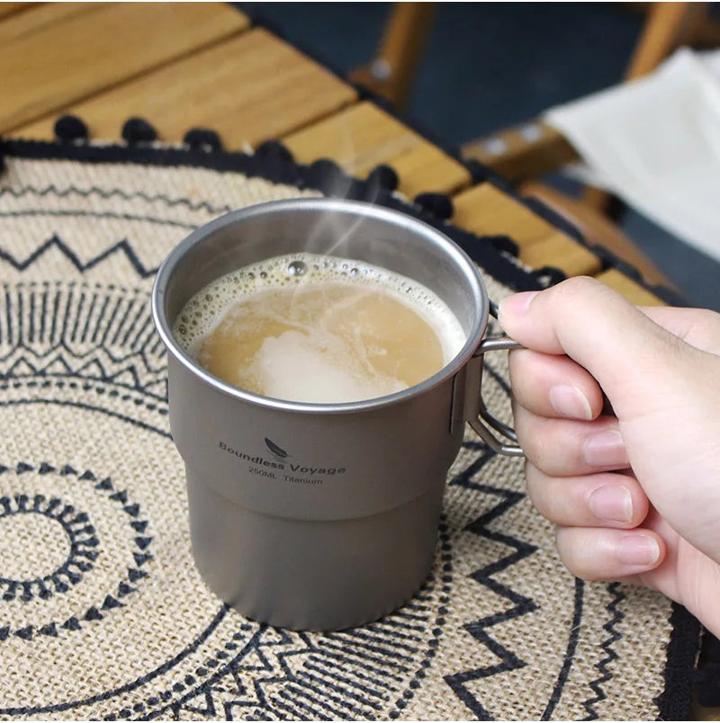 Boundless Voyage Titanium Coffee Cup 250ml Outdoor Portable European Stackable