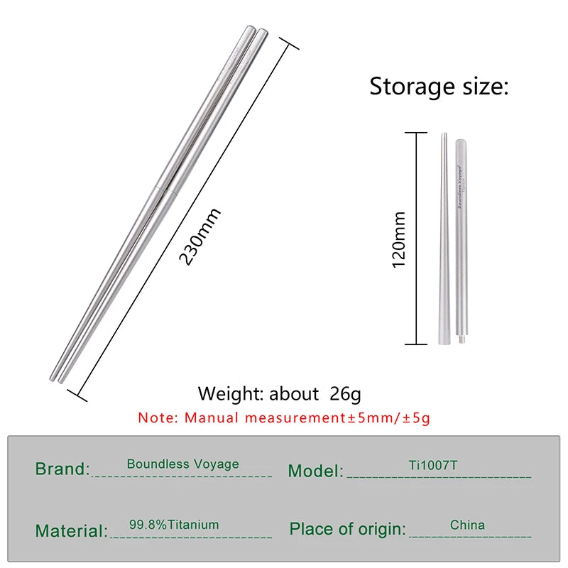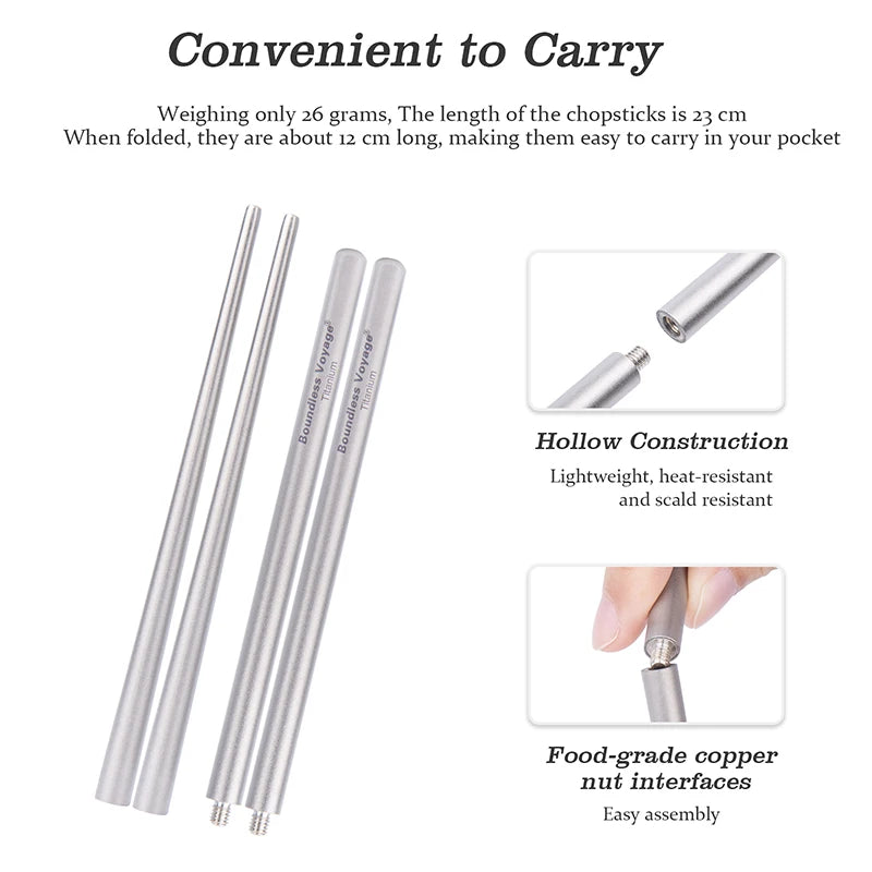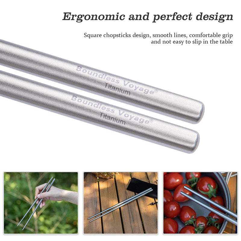 Boundless Voyage Titanium Foldable Chopsticks 22.8cm Outdoor Camping Portable