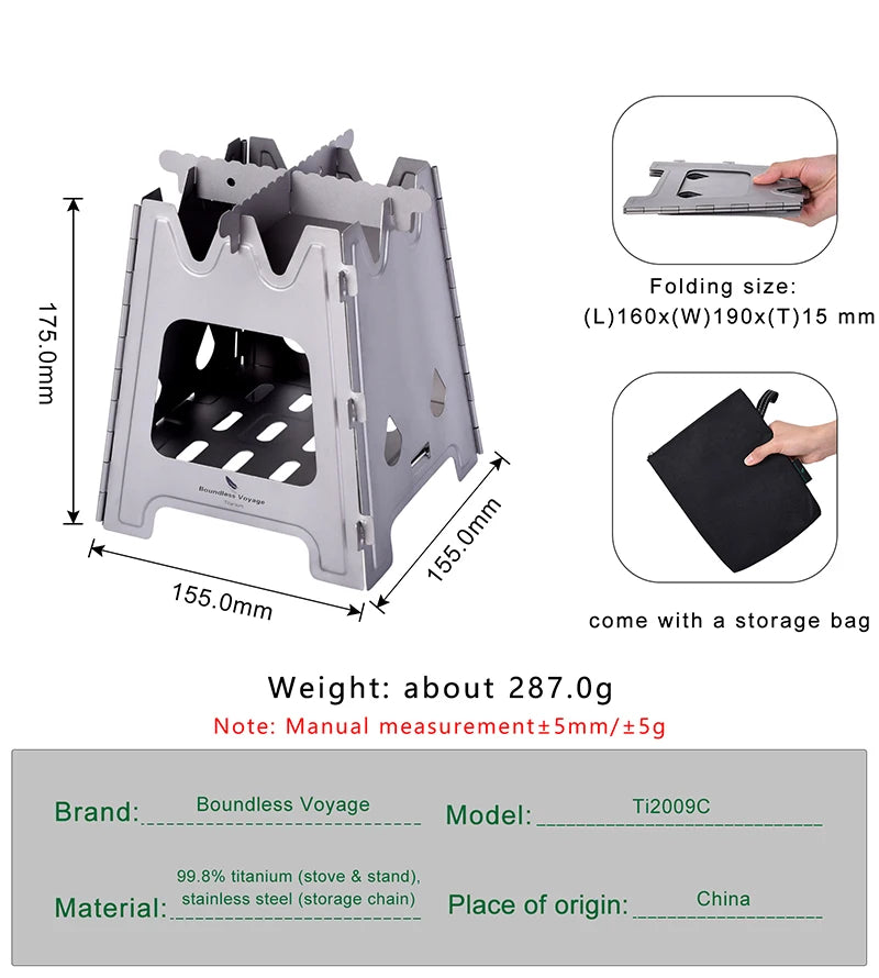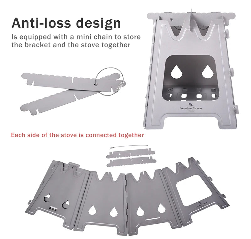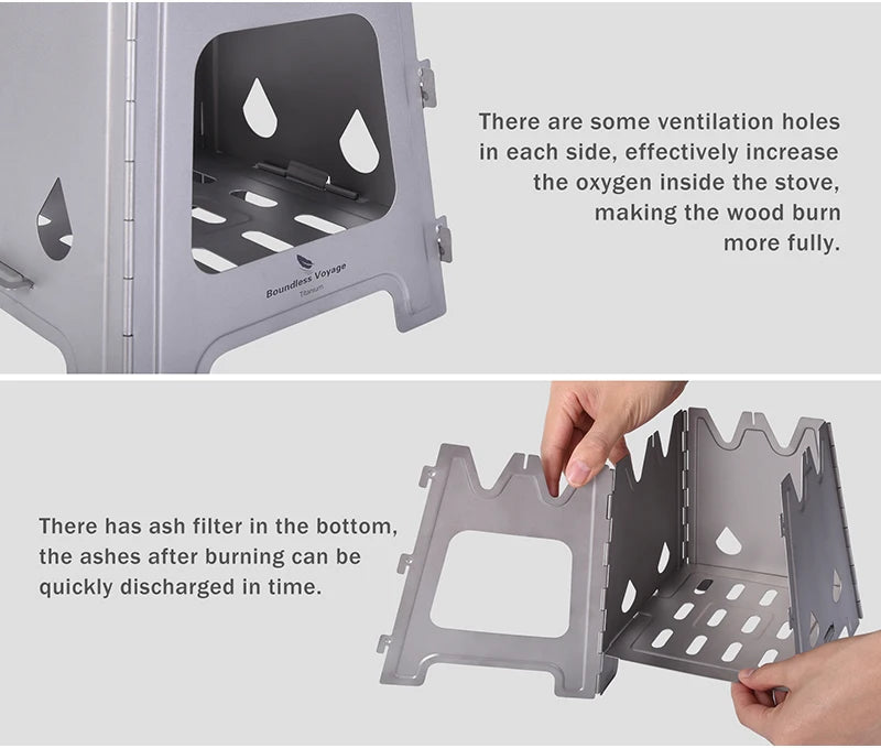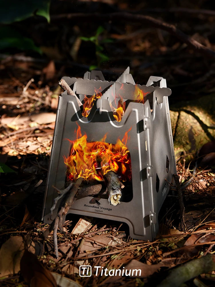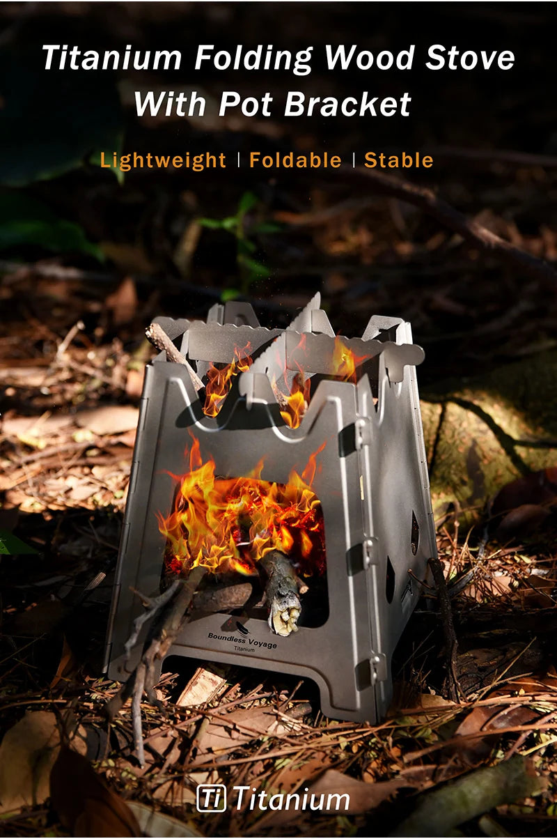 Boundless Voyage Titanium Folding Wood Stove With Pot Bracket Camping Burner