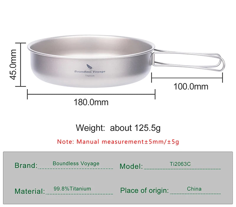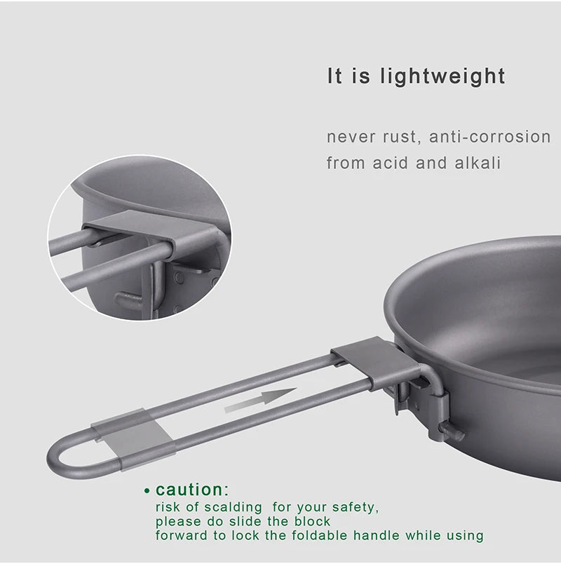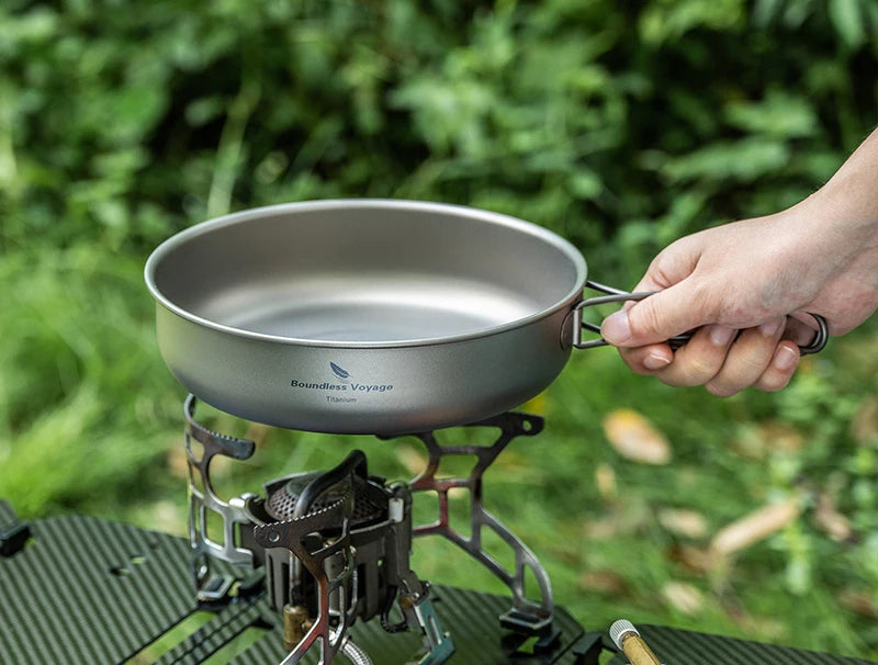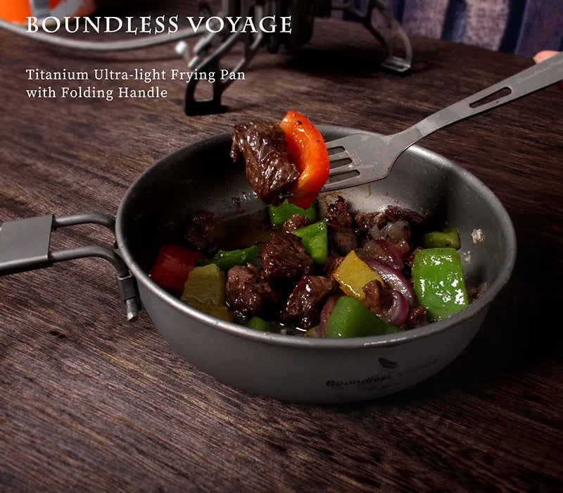 Boundless Voyage Titanium Frying Pan Camping Pan Outdoor Skillet with Folding