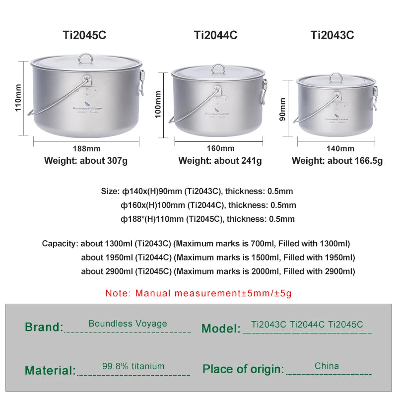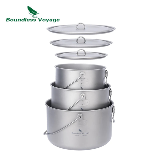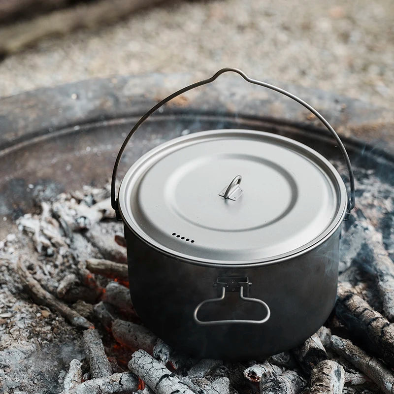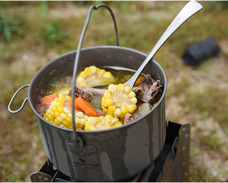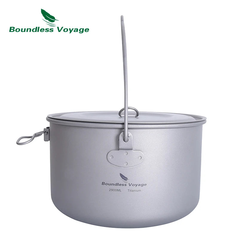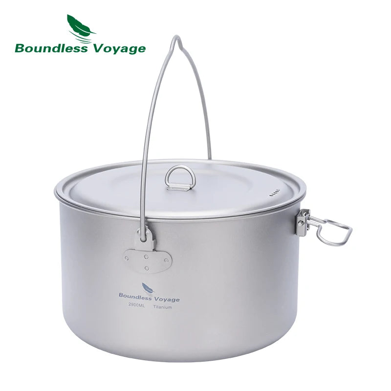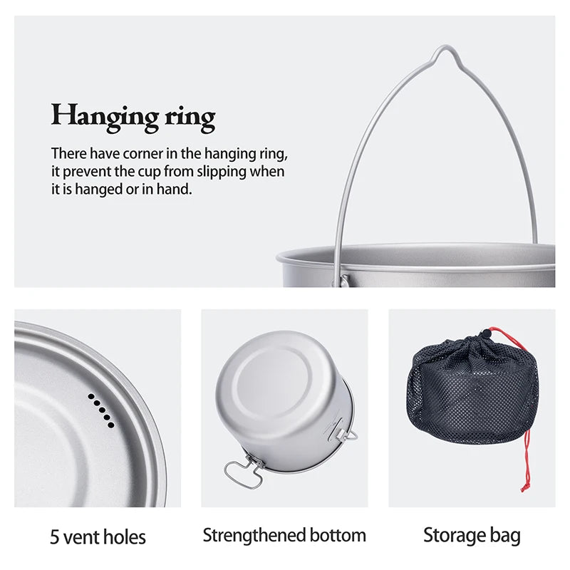 Boundless Voyage Titanium Pot Camping Cookware Hanging Soup Pot with Lid Outdoor