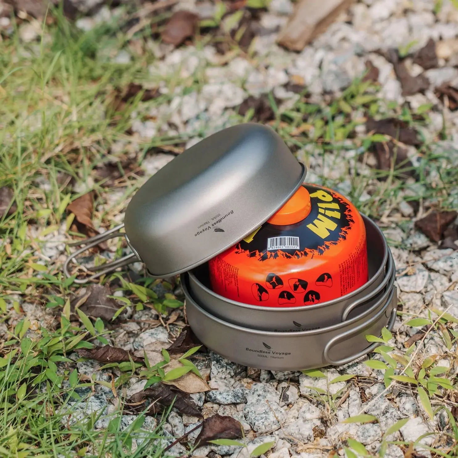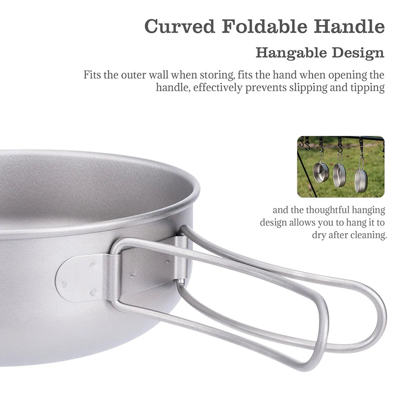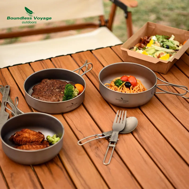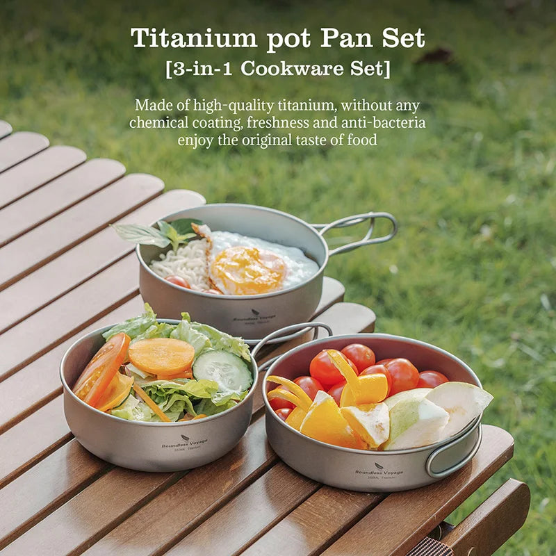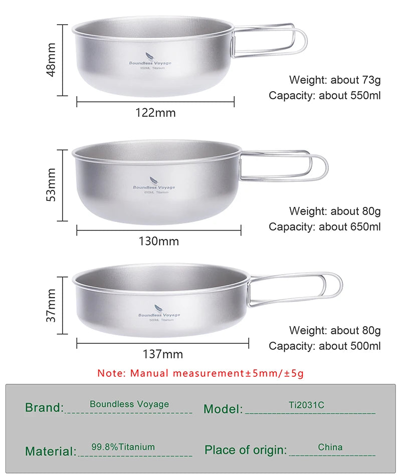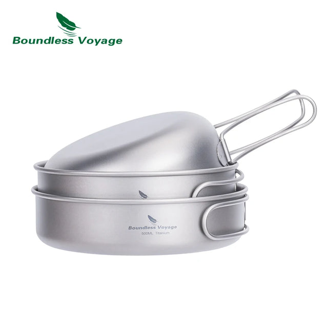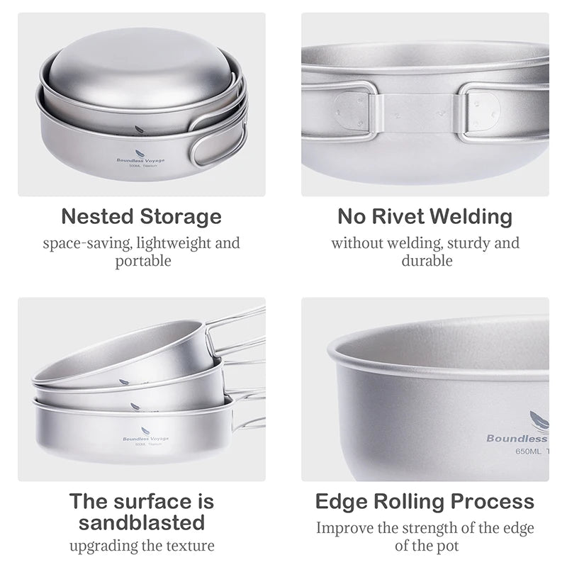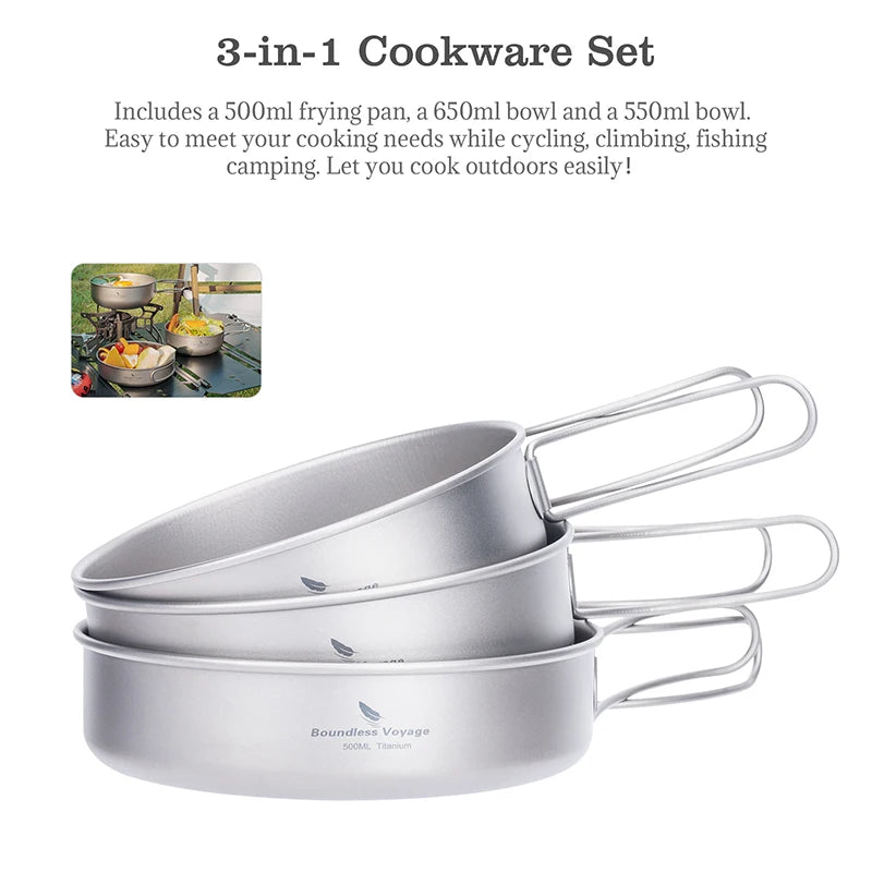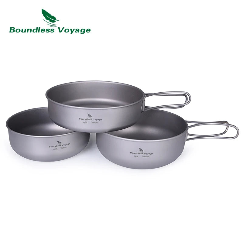 Boundless Voyage Titanium Pot Pan Bowl Set 500ml 550ml 650ml Camping Cookware