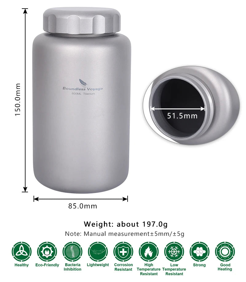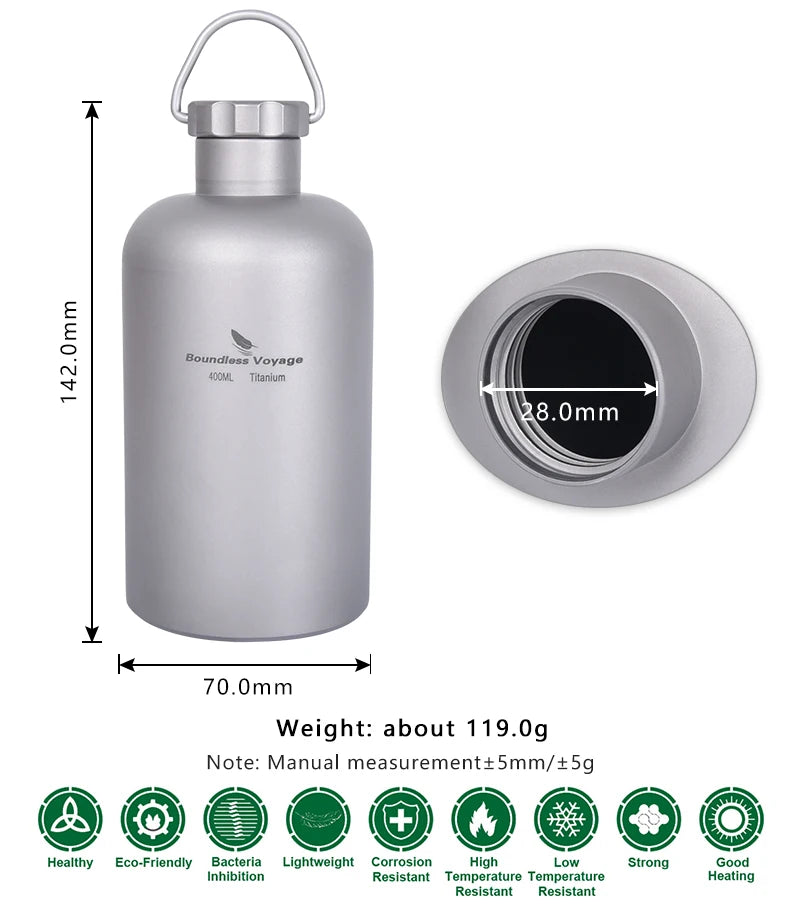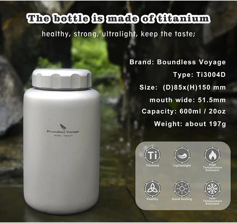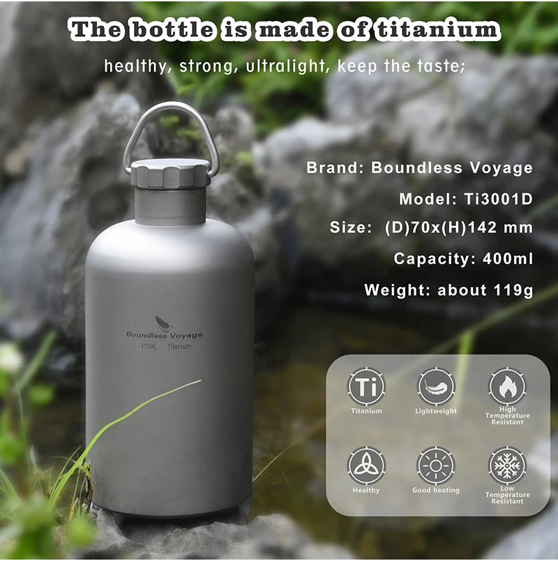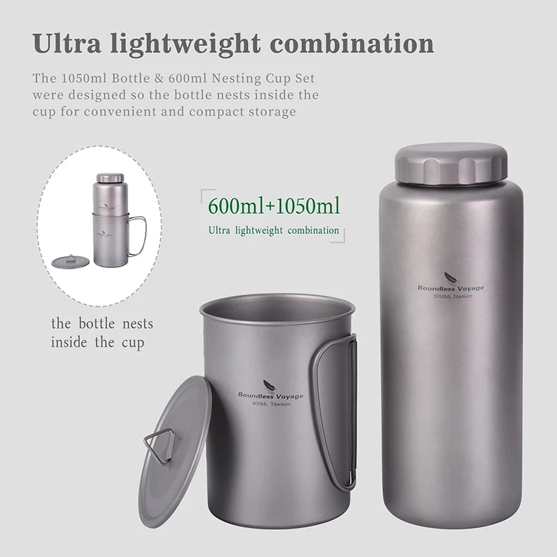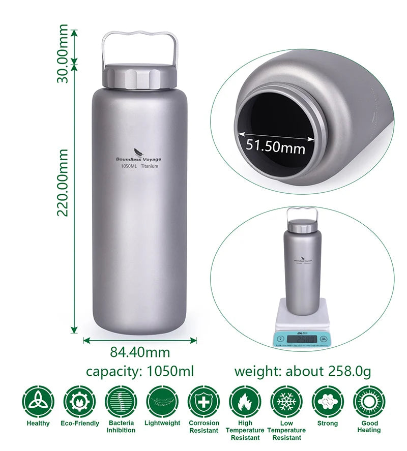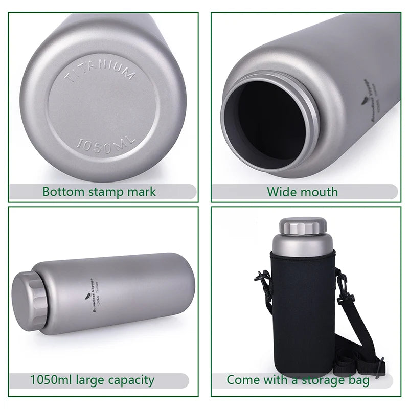Boundless Voyage Titanium Water Bottle 1050ml Camping Canteen Cycling Sport