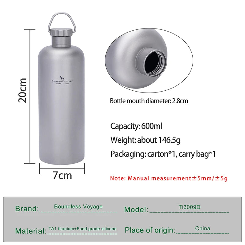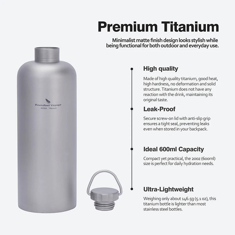Boundless Voyage Titanium Water Bottle 600ml Ultralight Leak Proof Lid Durable