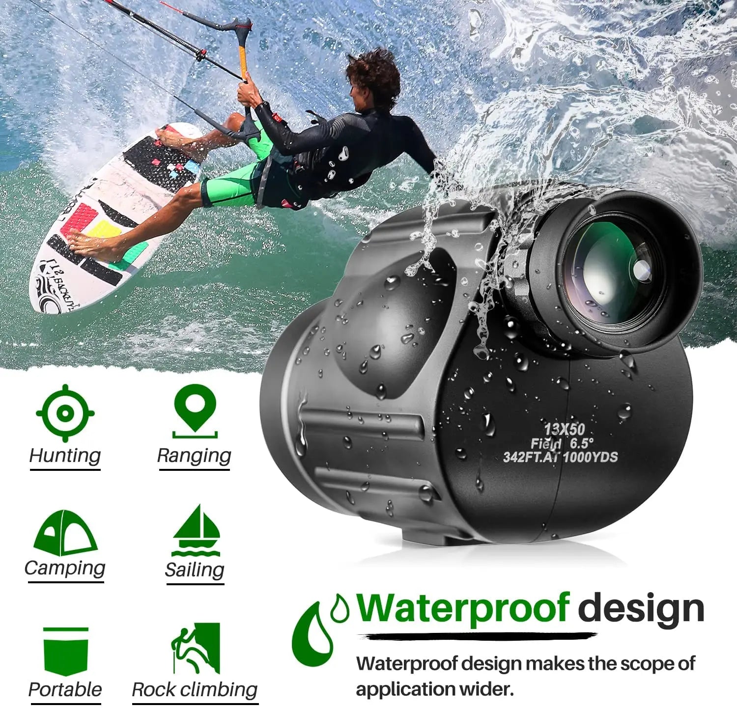 Gomu 13x50 Monocular Range Distance Powerful Professional Telescope Waterproof