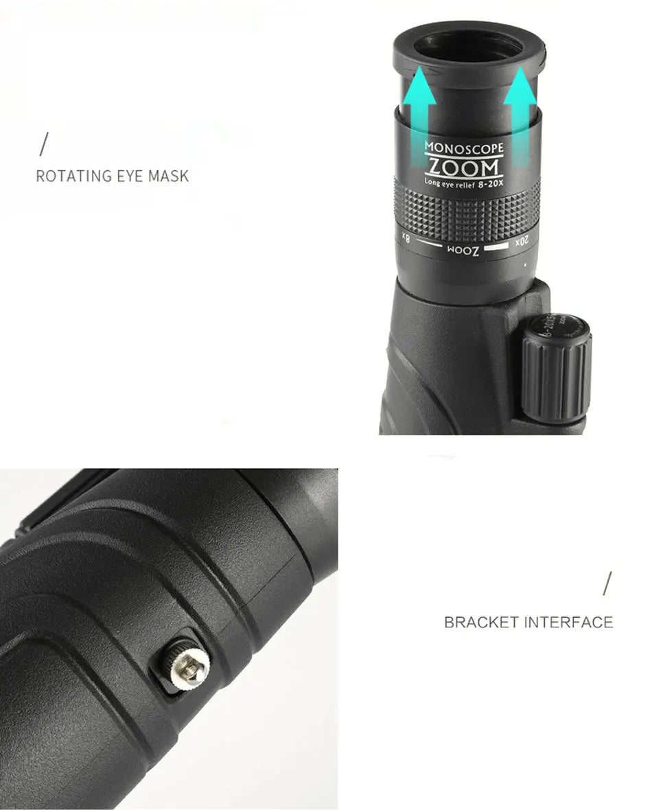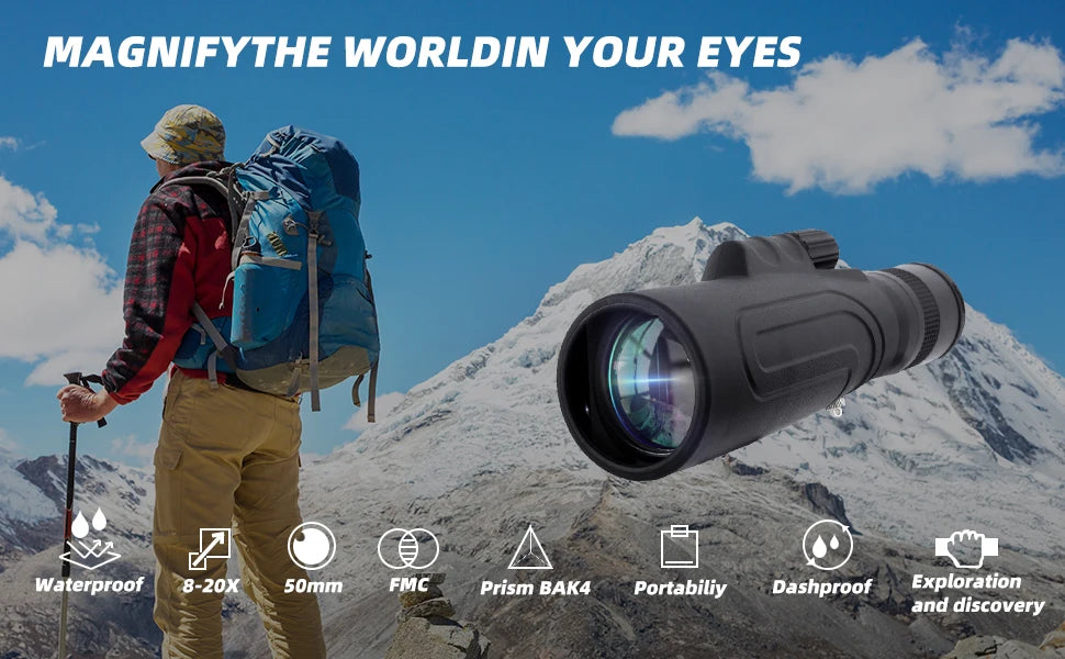 Monocular Telescope 8 20x50 Zoom High Powerful Waterproof Bak4 Prism