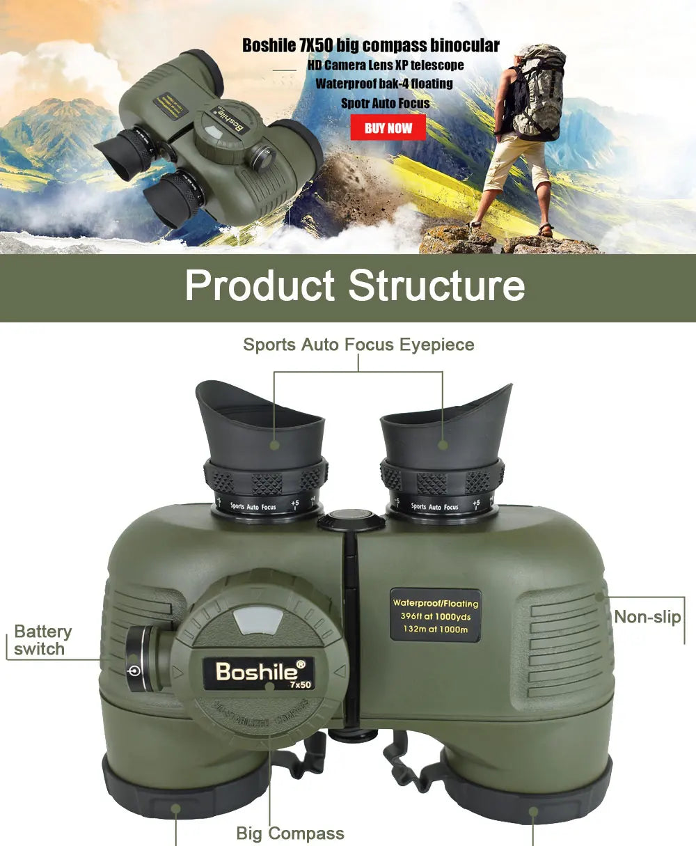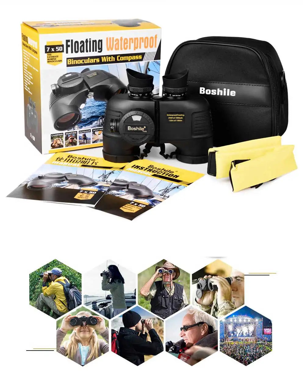 Powerful Marine Binoculars Boshile 7x50 Waterproof Telescope With Rangefinder