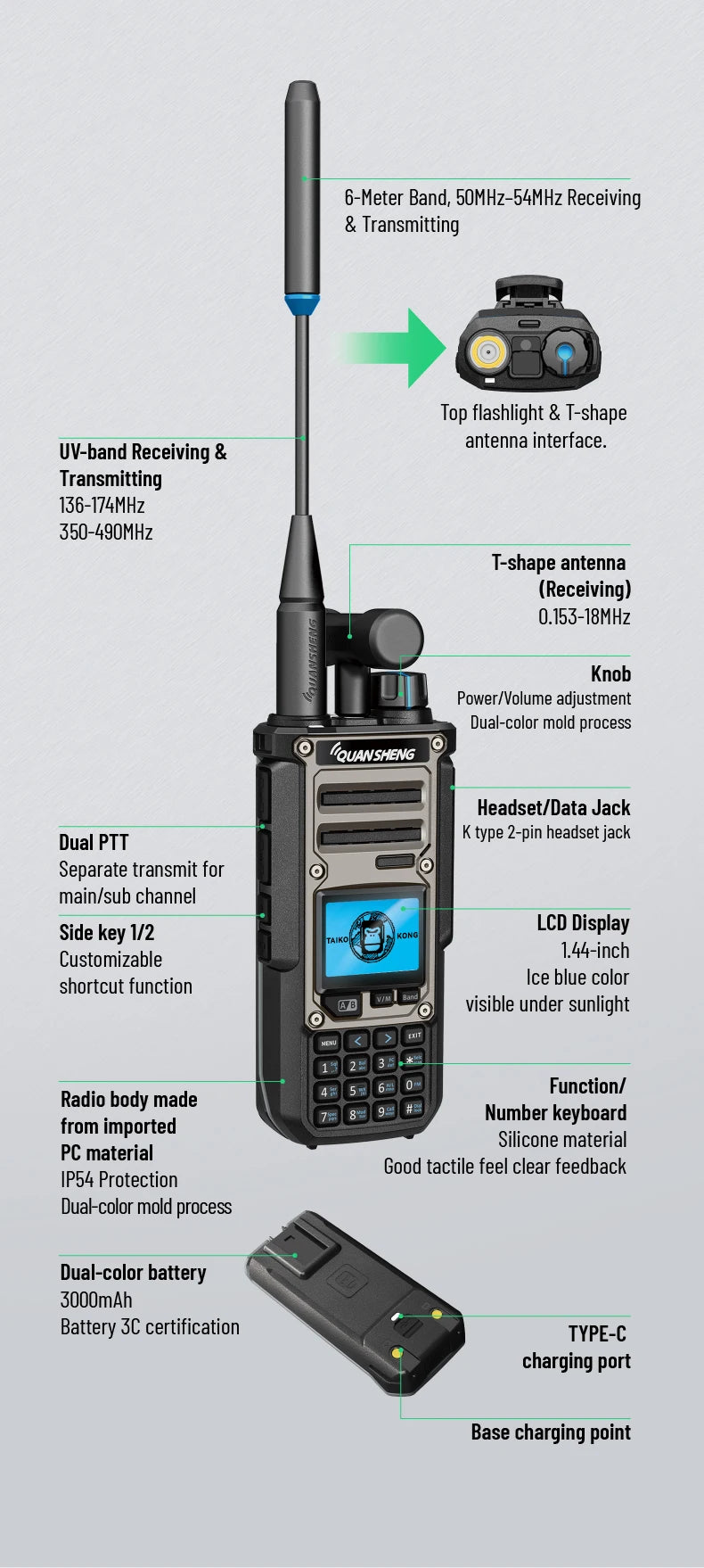 🌐 Key Features & Specifications📡 Wide Frequency CoverageReceiving Band: 0.153MHz–1160MHz (AM/SSB/FM) – including shortwave, VHF, UHF, and more!