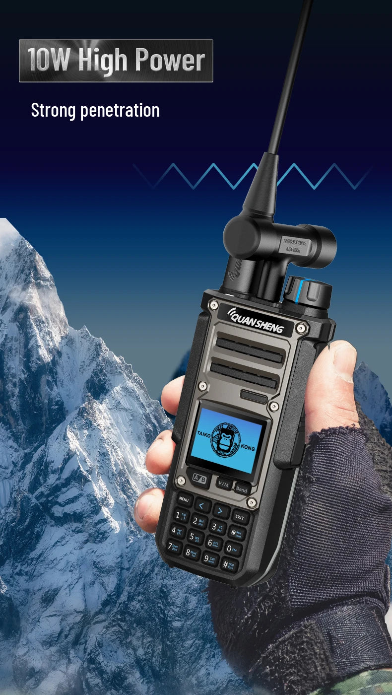 136–174MHz / 350–490MHz (VHF/UHF) – 10W high power output for long-range communication!