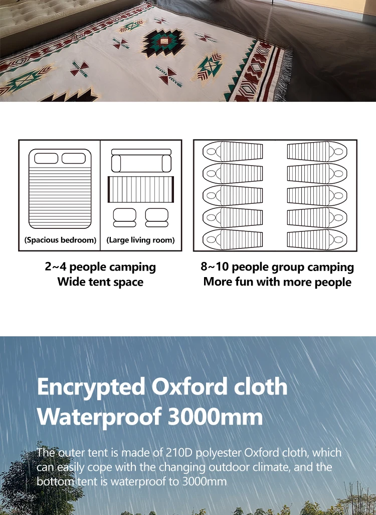 Material: Synthetic fibres,210D Oxford cloth,Aluminum Pole,Iron Pole
