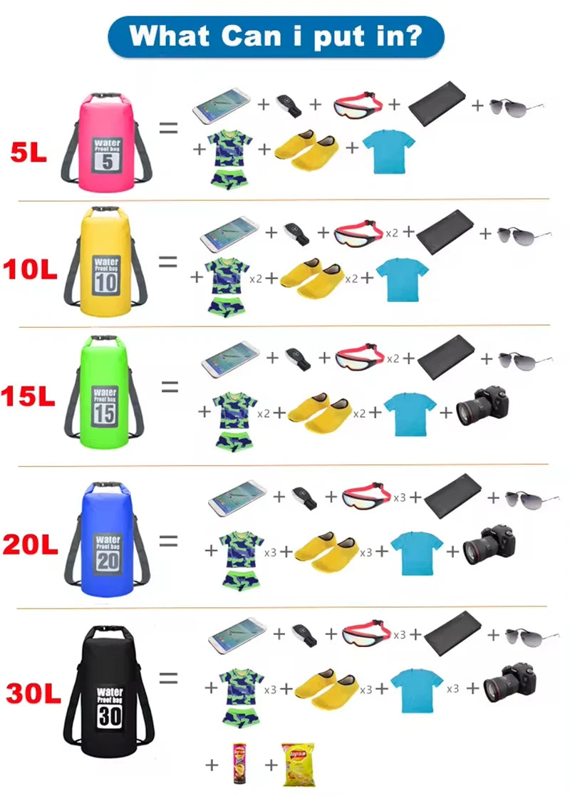Waterproof PVC Dry Bag Outdoor Sport Storage Bag for Kayaking, Boating, Fishing