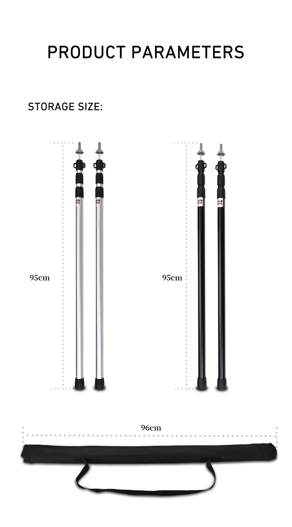 1.【3 Sections Adjustable】Westtune adjustable tarp pole is designed with 3 sections, length from 95-235cm. With a simple twist, you can lock & unlock the collapsible tarp pole. Each package contains 2 tarp poles.