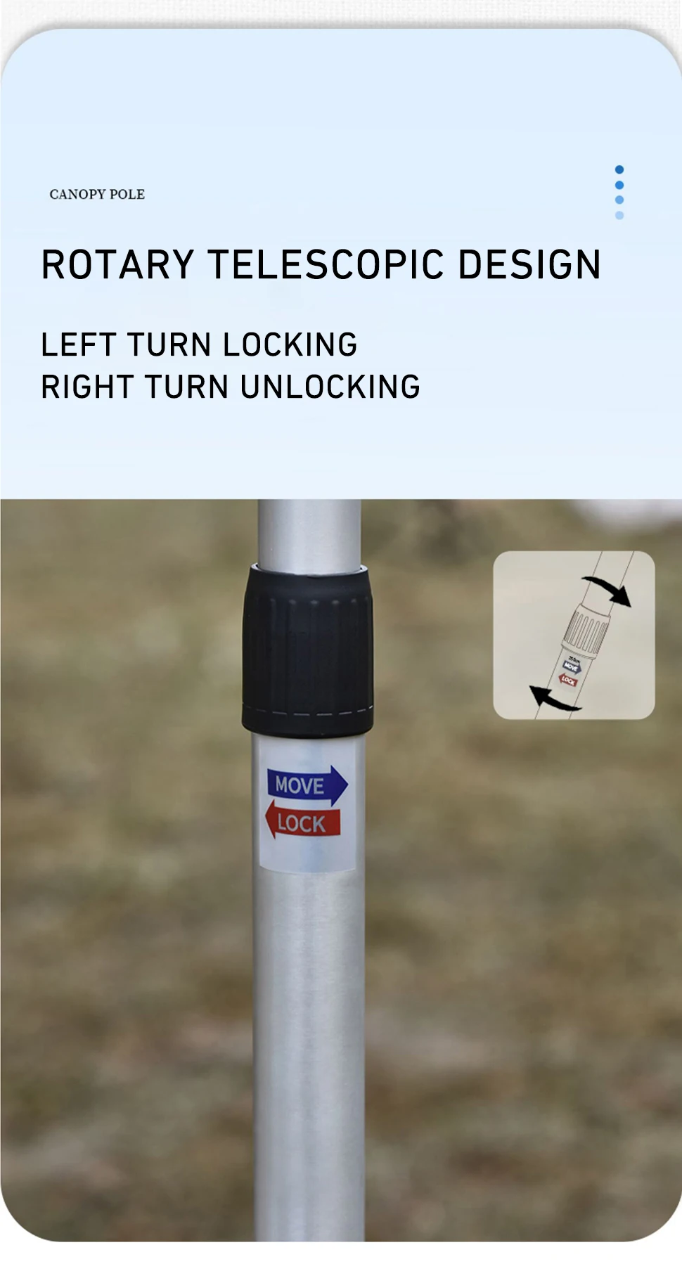 4.【Anti Tear & Non Slip】Our canopy pole is designed with rubber caps, don't worry about having a torn tent again! Featuring a non-slip bottom for maximum support and strength. Removable silicone tip cover eliminates punctures and reduces slipping. Protect your tent from gale, rain & snow.