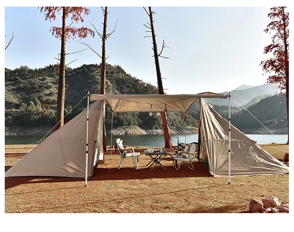 3.【Lightweight & Portable】Each tarp rod weights only about 485g. The telescopic pole also carries a compact, easy-to-carry zippered bag from a single camp to a family camp. Great for car camping trips and motorcycle camping trips.