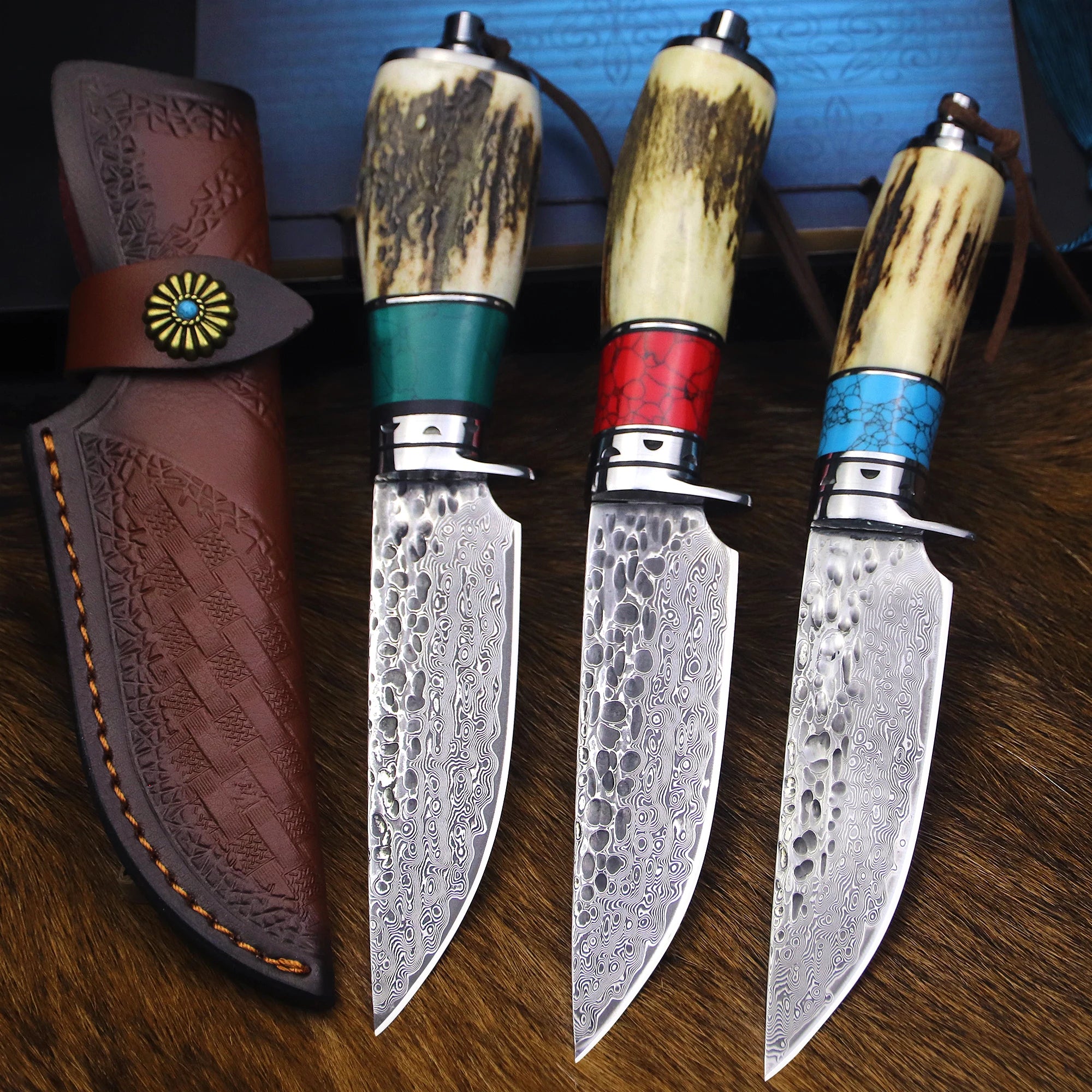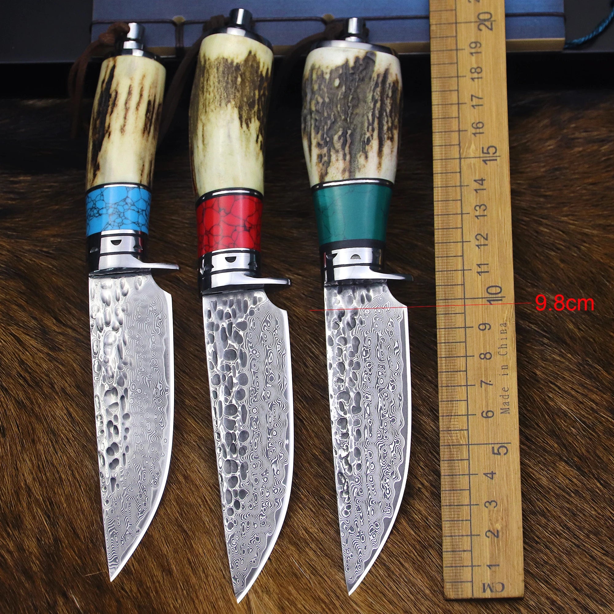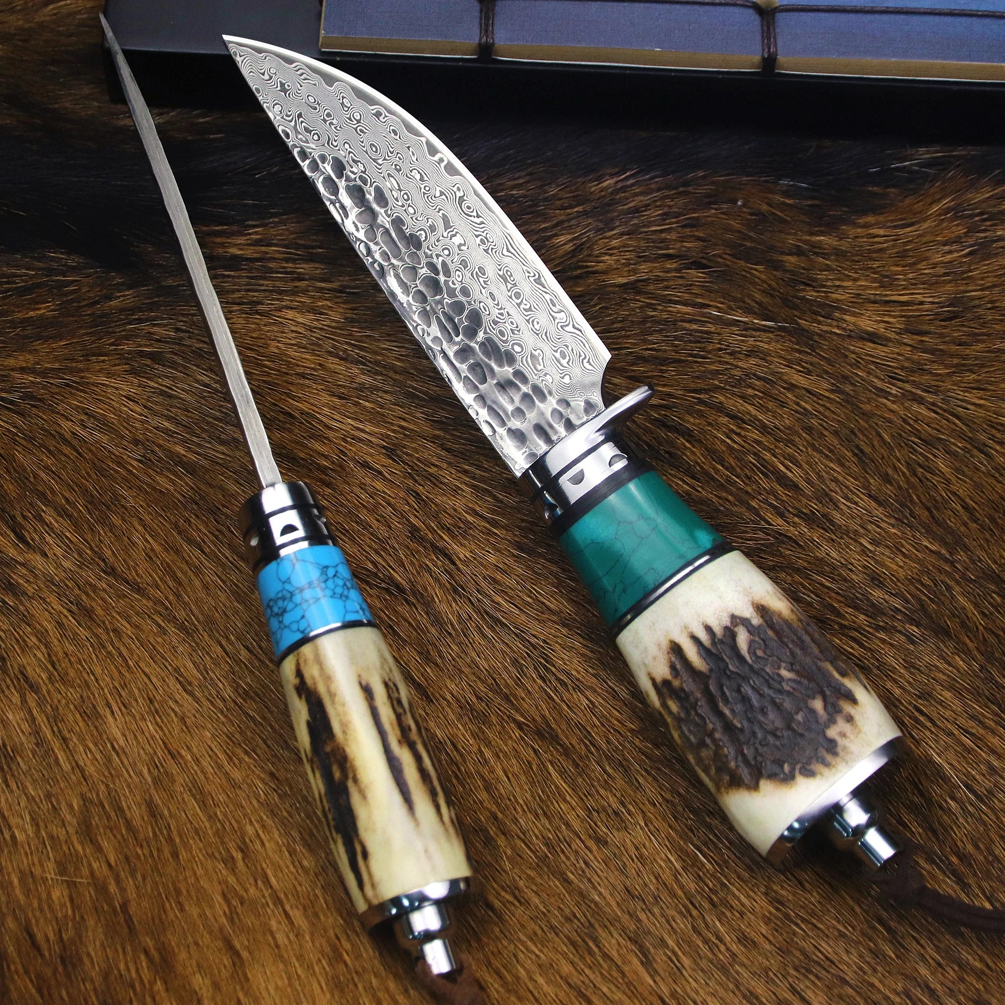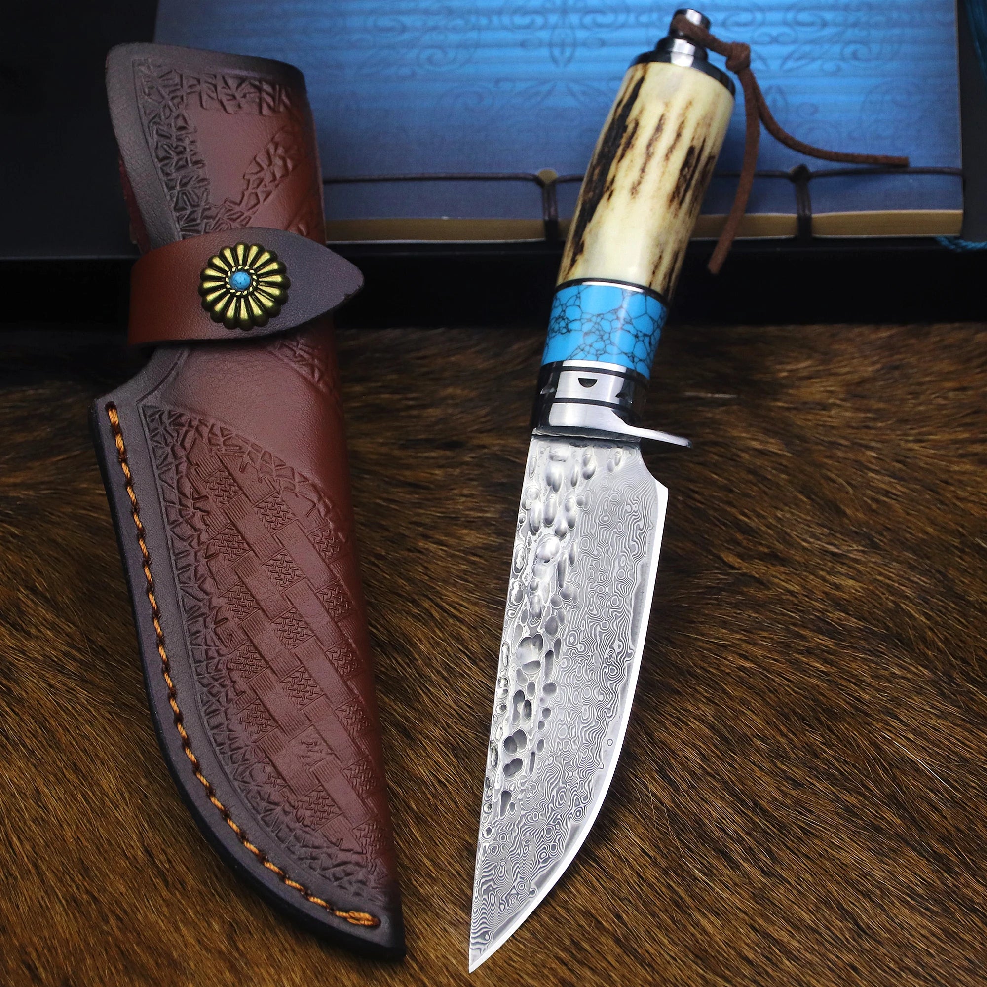 Wpkopya Japanese Damascus Steel G10 Steel Core Hunting Knife with Leather