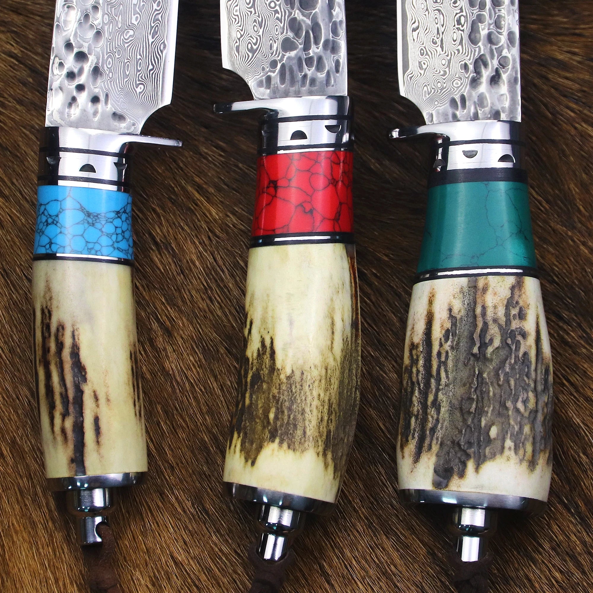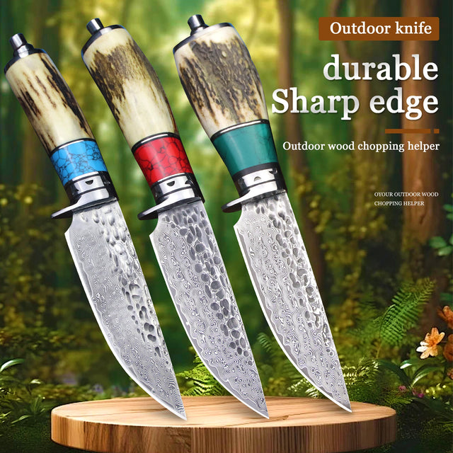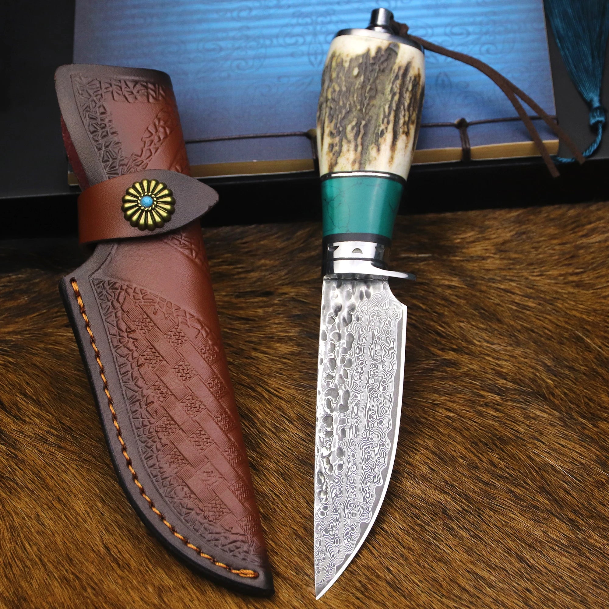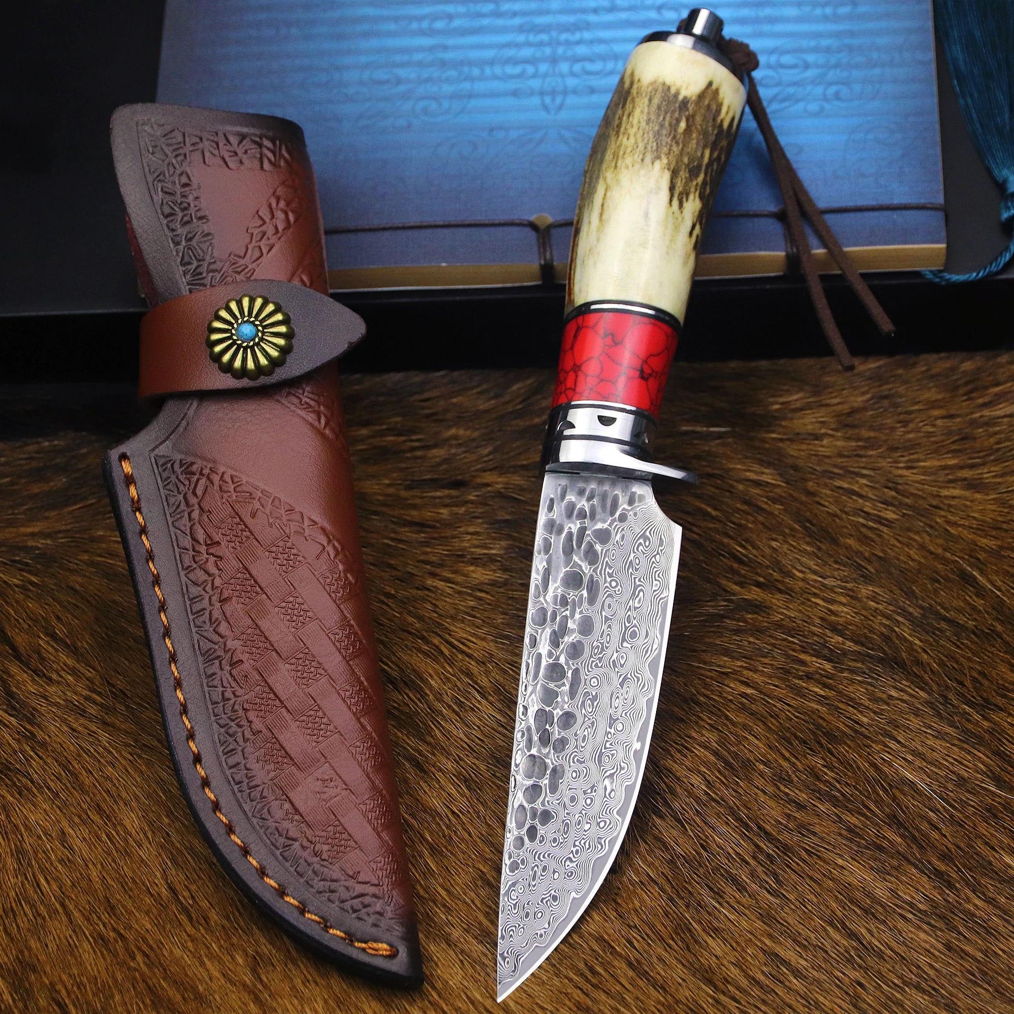 Wpkopya Japanese Damascus Steel G10 Steel Core Hunting Knife with Leather