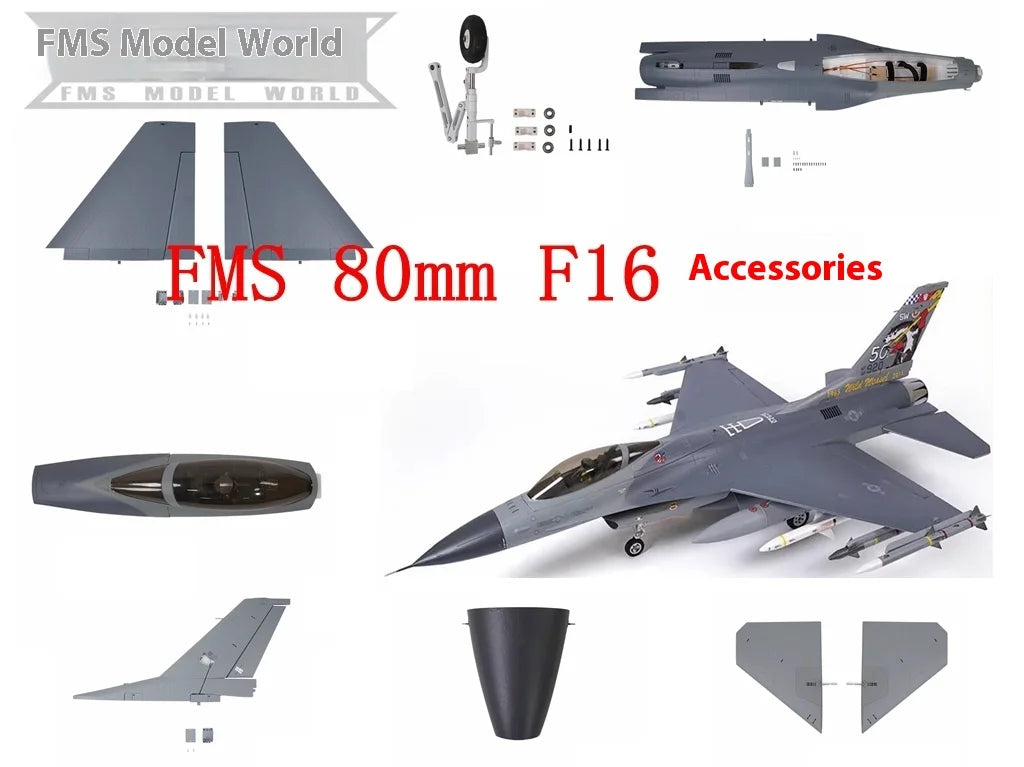 Fms 80mm F16 Aircraft Complete Set Of Accessories, Fuselage, Main Wings, Flat Tail, Vertical Tail, Cockpi...