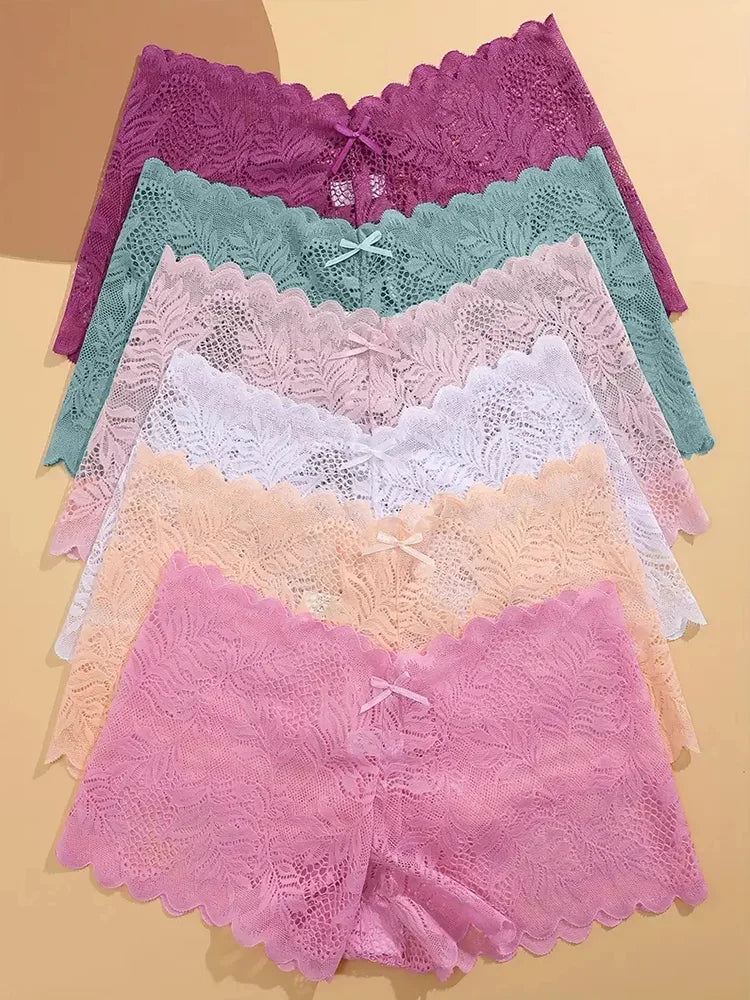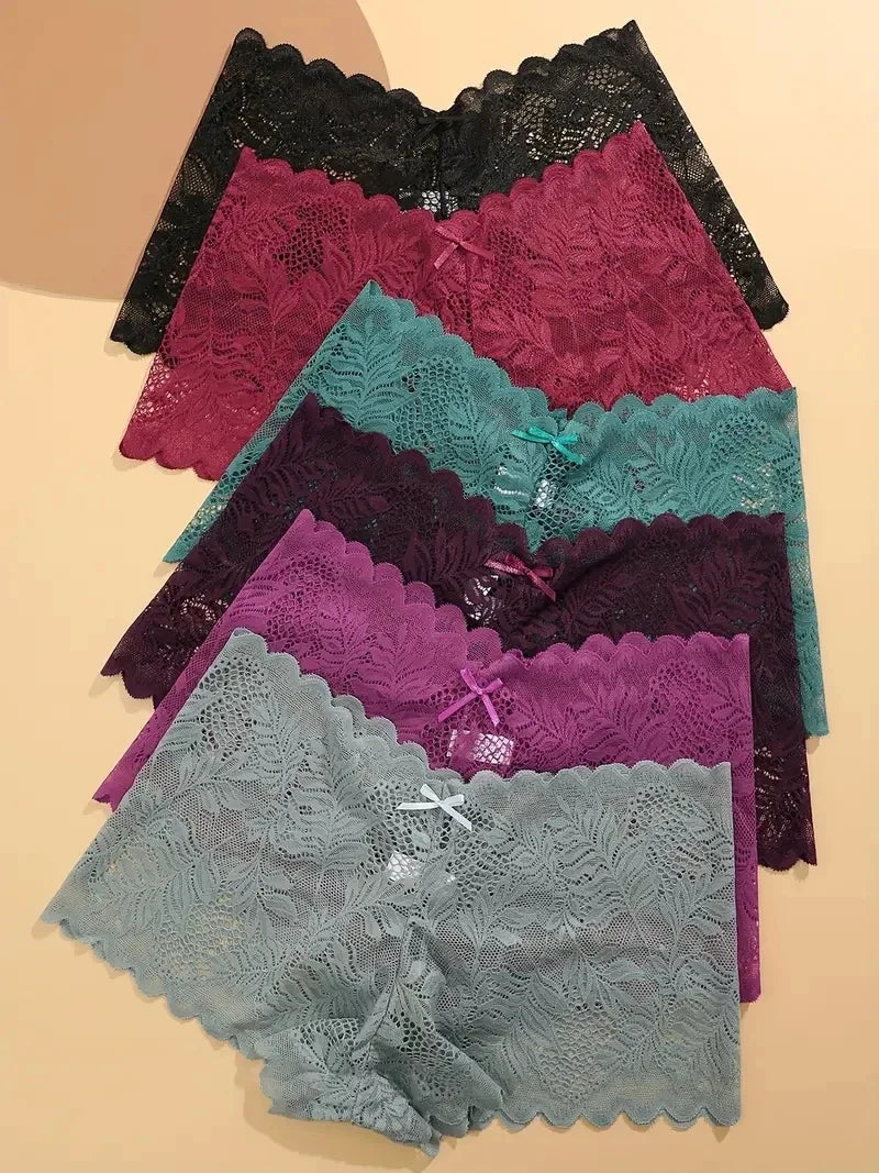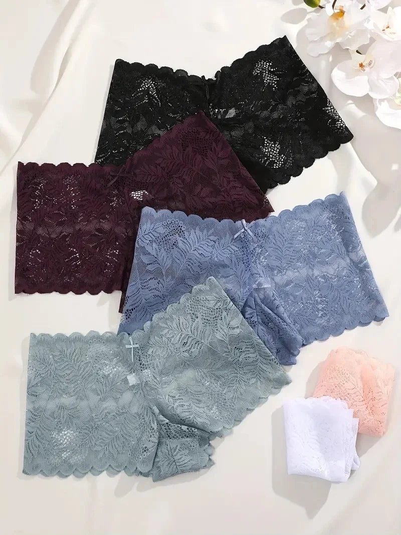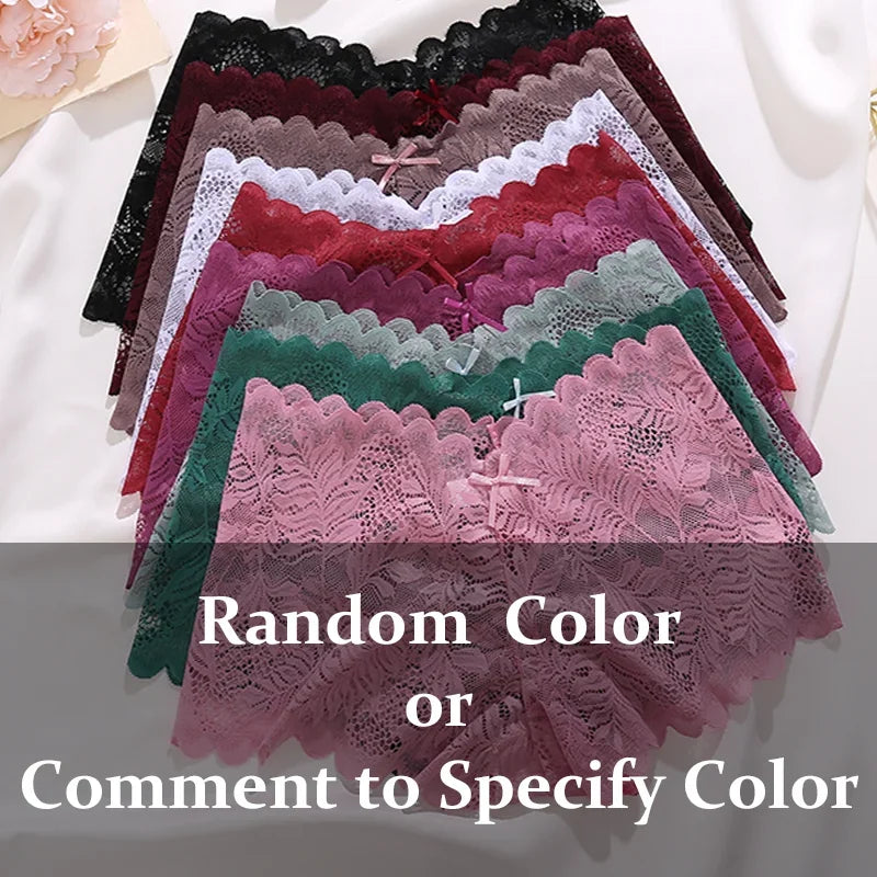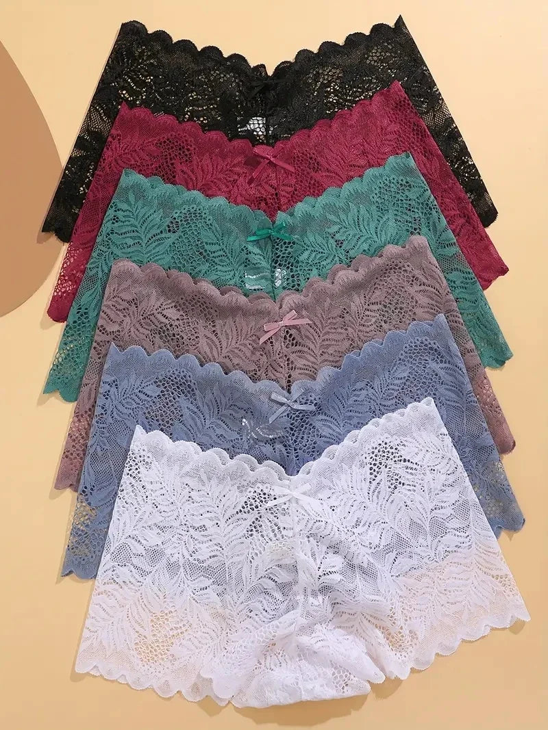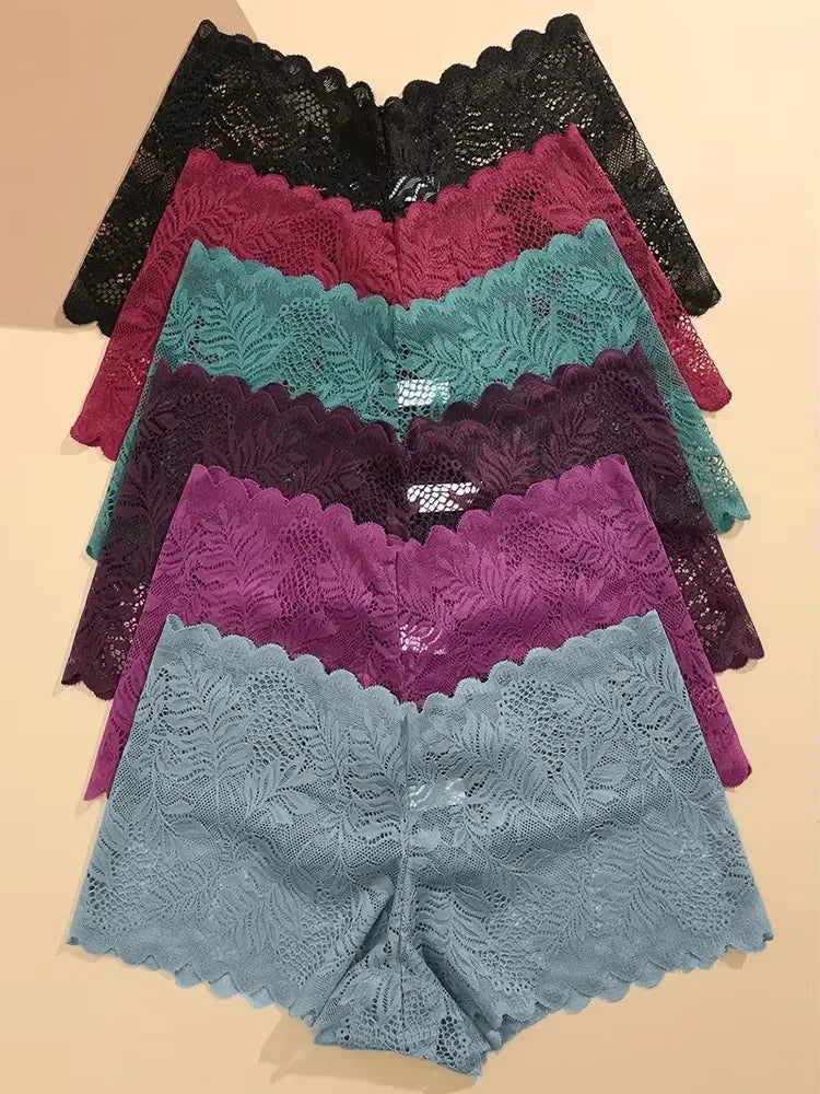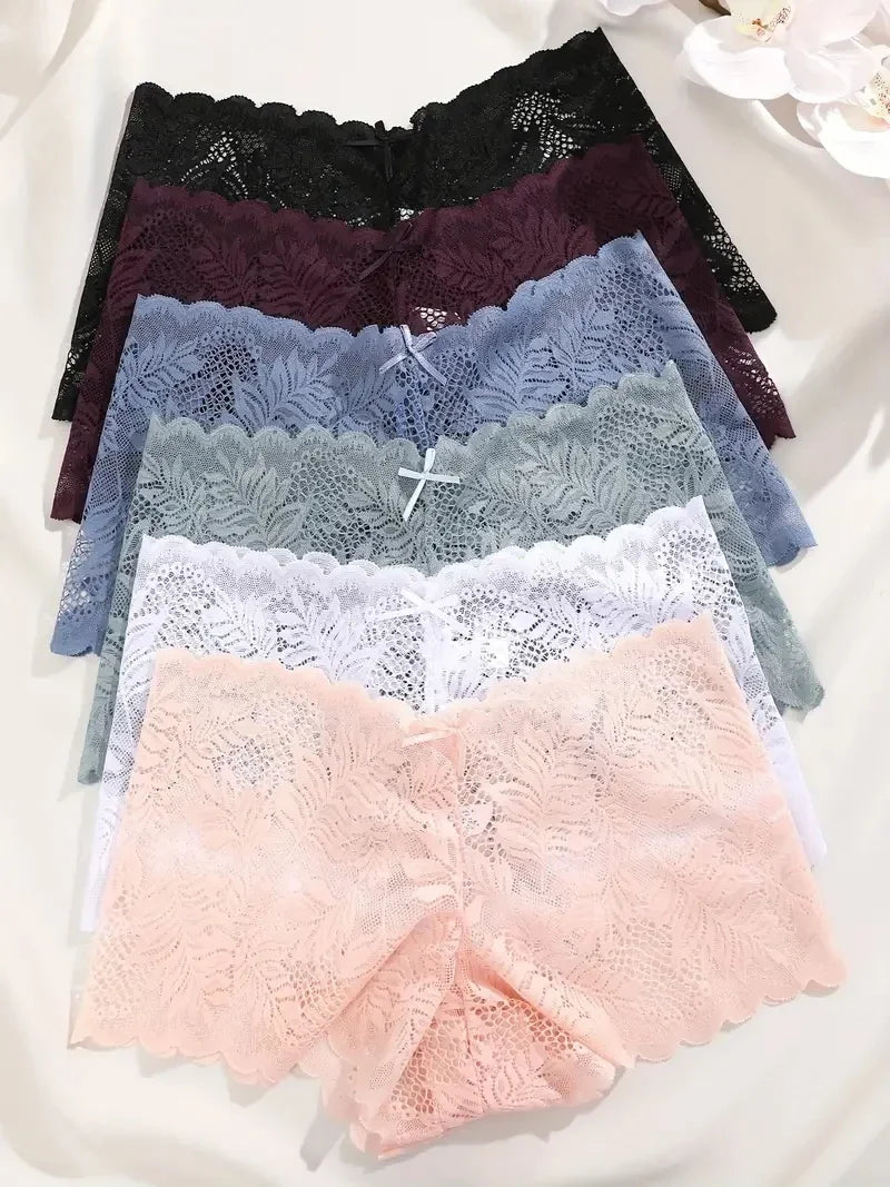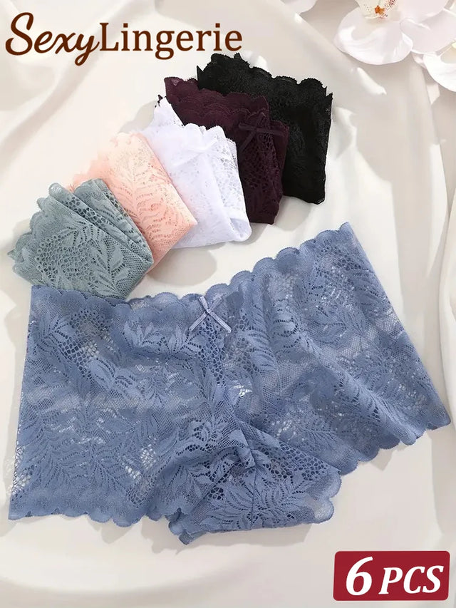 6PCS Women Sexy Lace Boxers Briefs Seamless Breathable Low Waist Female Underwear Solid Color Intimates H...