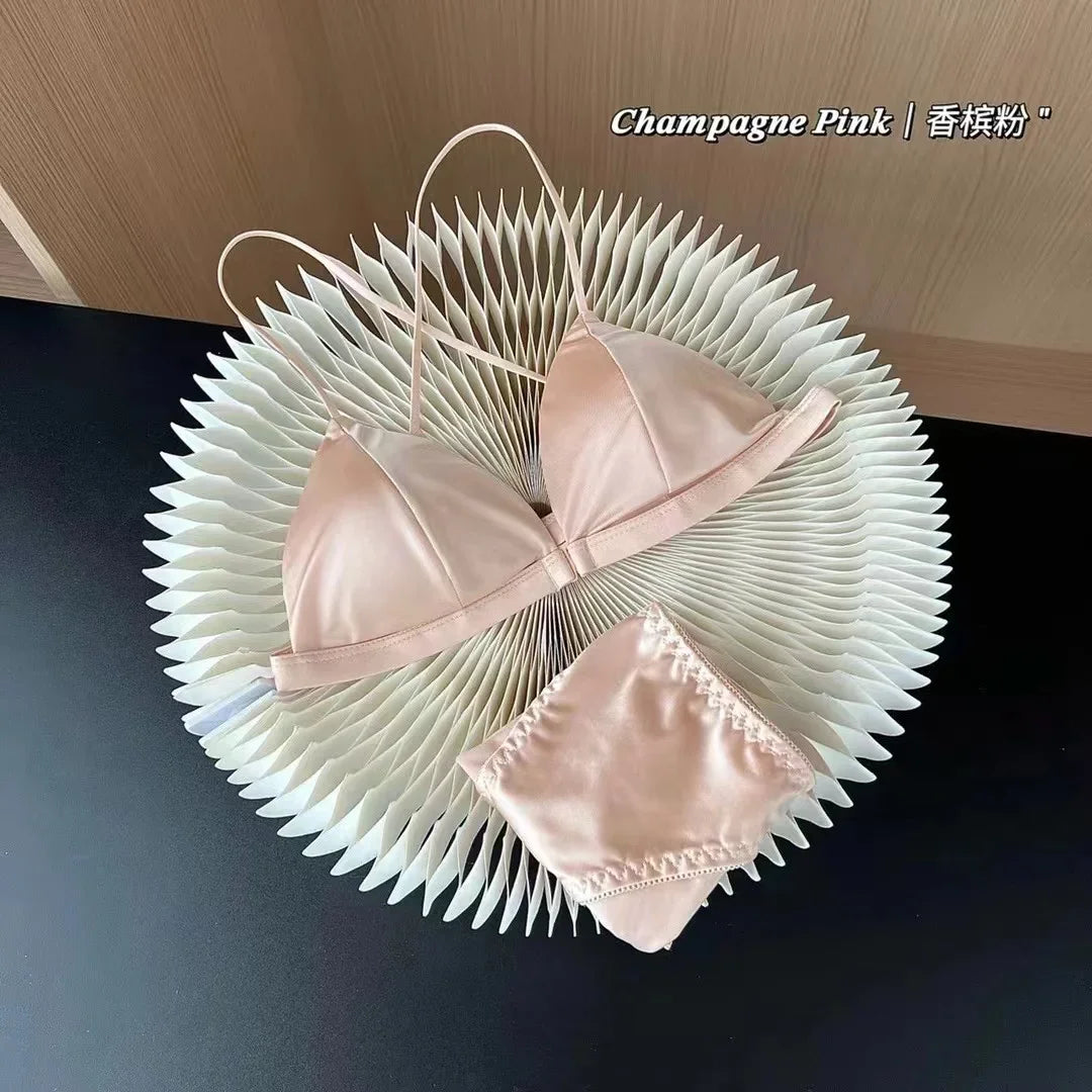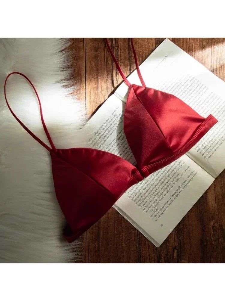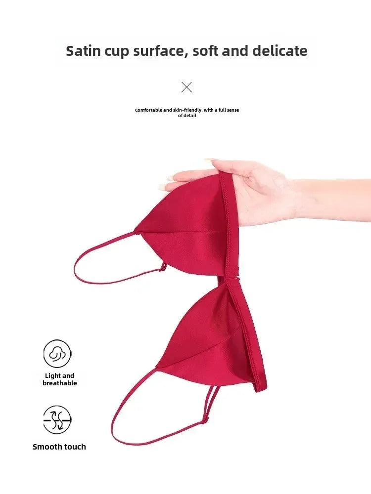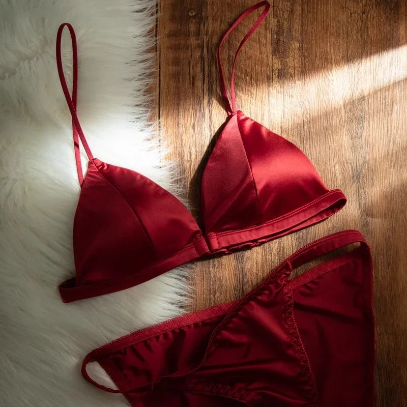 MOYISU VS Styls Inspired Red Lingerie Set | French Triangle Bralette | Wireless Push-up for Petite | Deep...