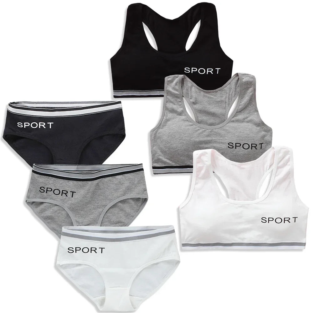 Teens Girls Sports Bra Puberty Gym Underwear Wireless Cotton Training Bra Set 8-14Years
