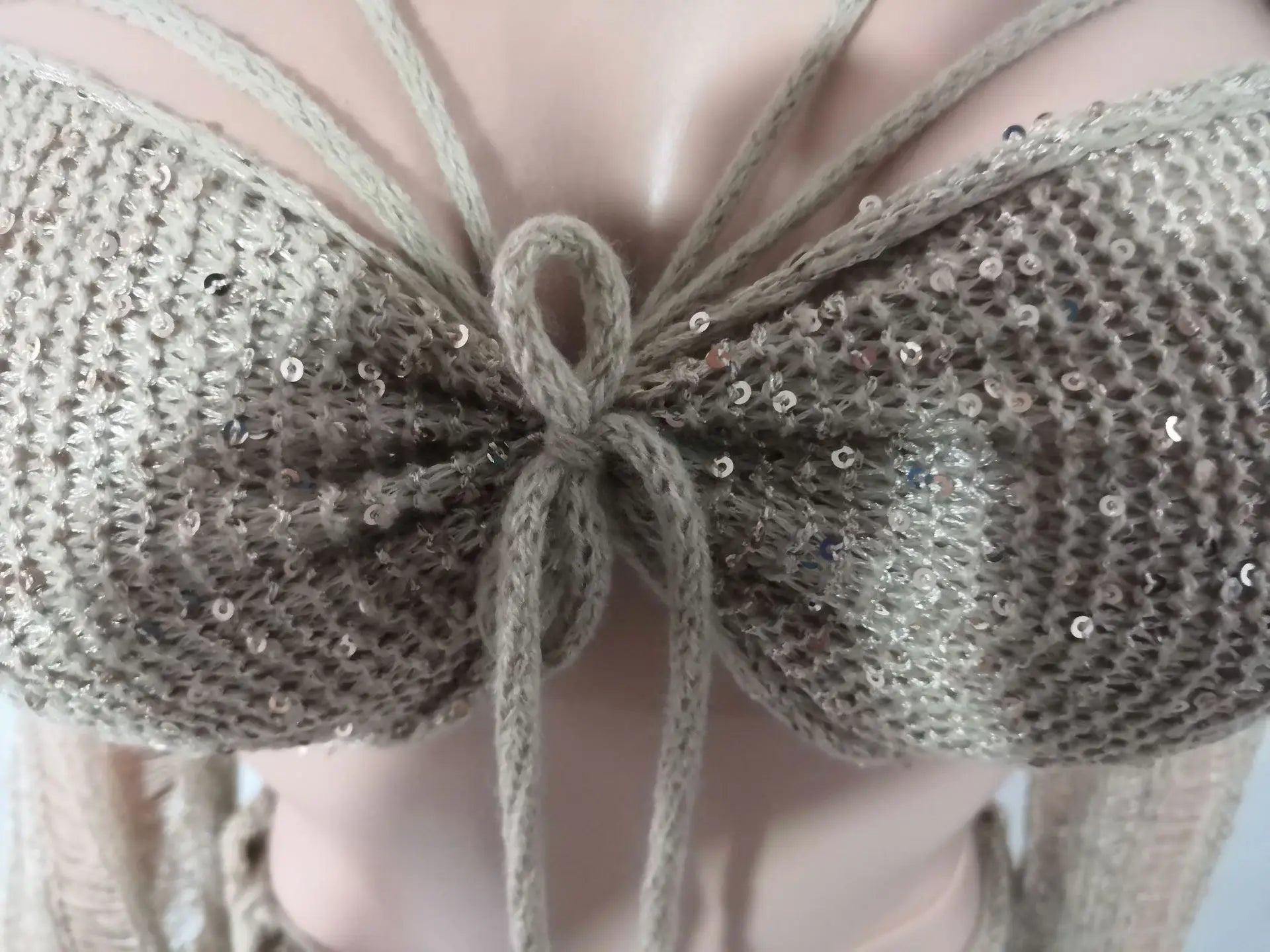 Three Pieces Sweater Dresses Sets For Women Party Sequins Hollow Out Knitted Dress Long Sleeve Crop Top a...