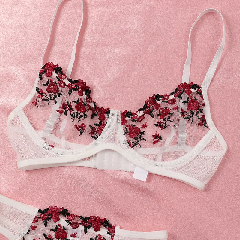 Transparent Mesh White Fancy Embroidery Sexy Lingerie Set See-through Temptation Bra And Panties Sets Erotic Underwear Costumes