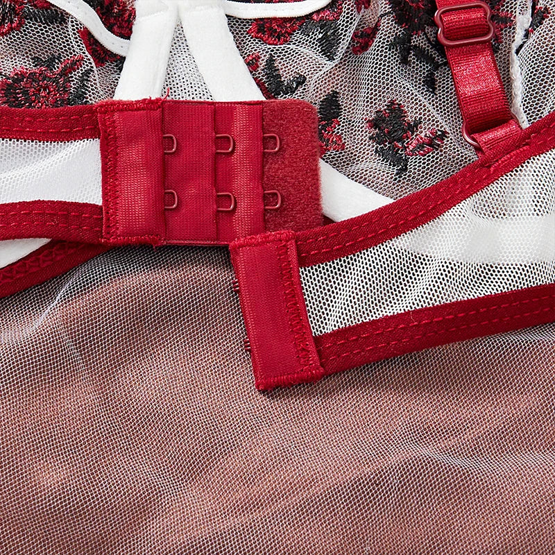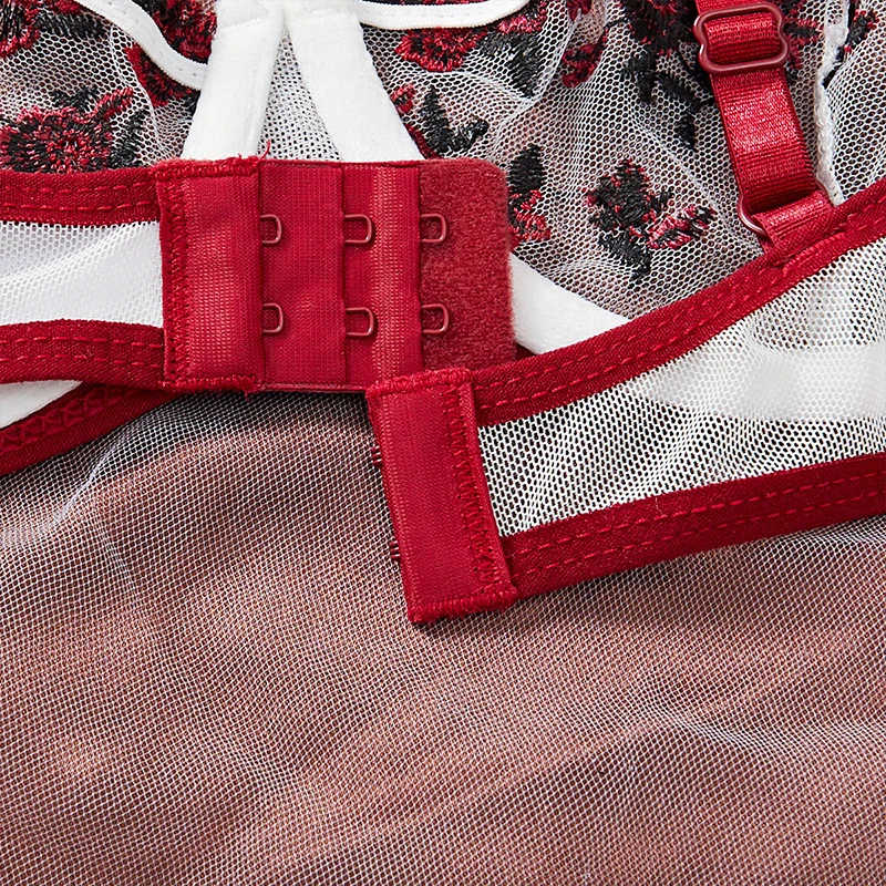 White And Red Contrast Sexy Lingerie Women Embroidery Floral Ultra-thin Exquisite Transparent Underwear Bra Set Erotic Costumes