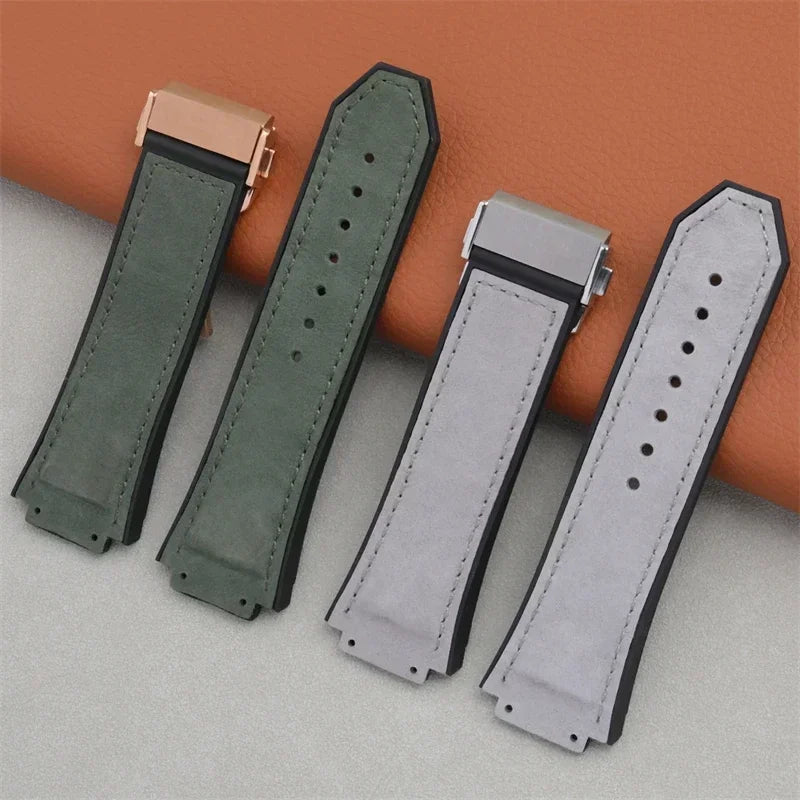 29x19mm Nubuck Leather With Rubber Watchband For Hublot Strap For King Power ...