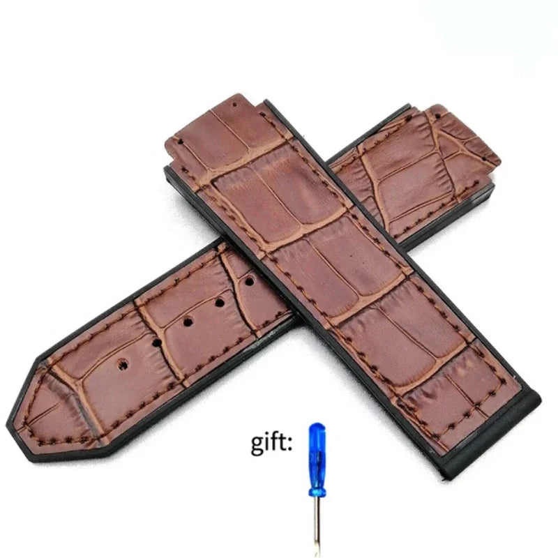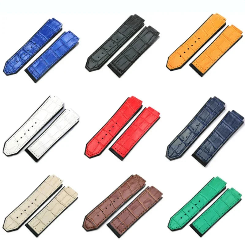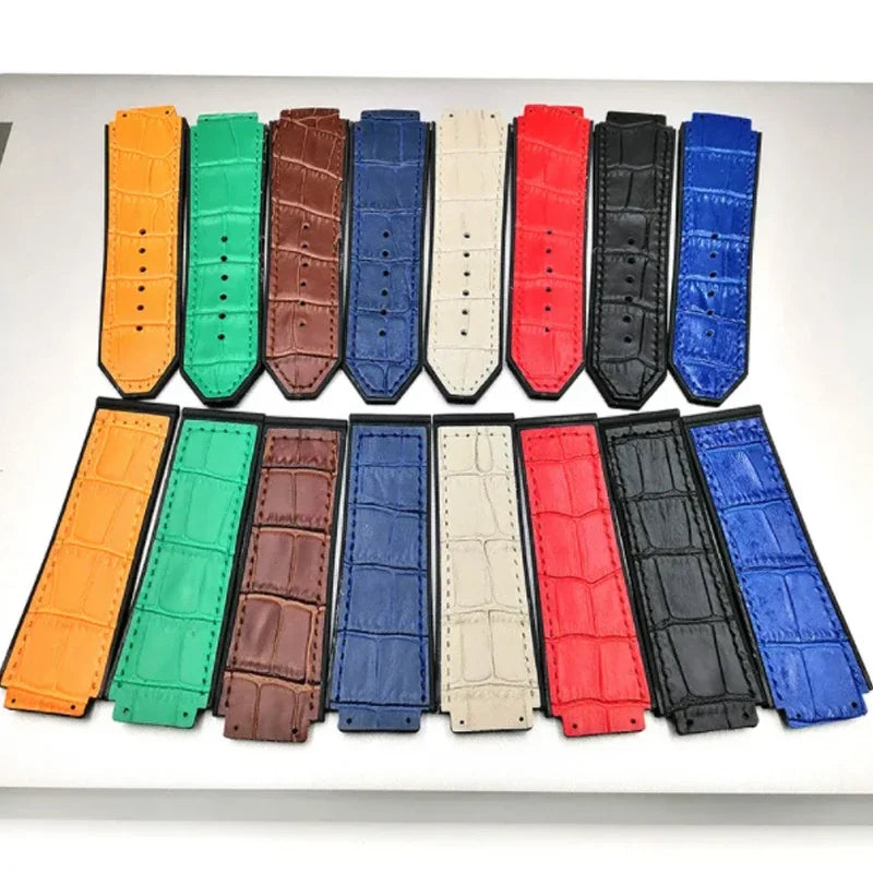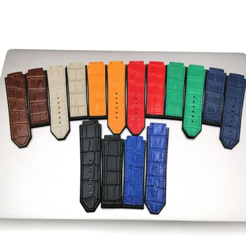 leather Watch Strap For Hublot Big Bang Series Bottom silicone Watch Bracelet...