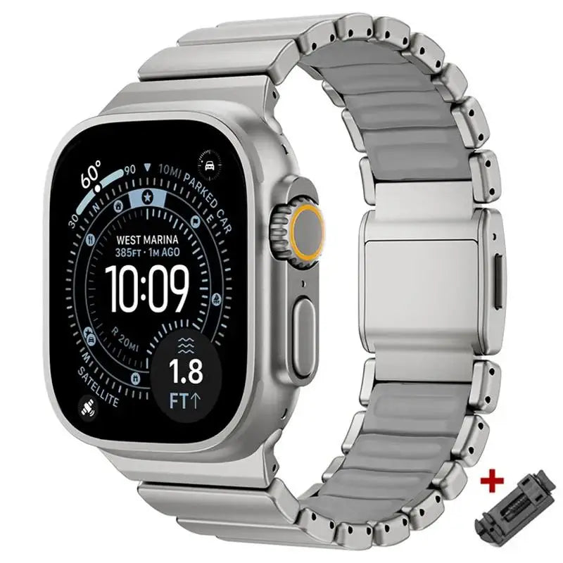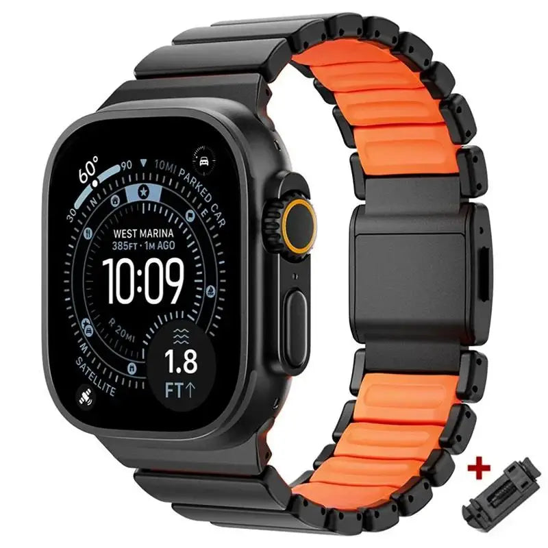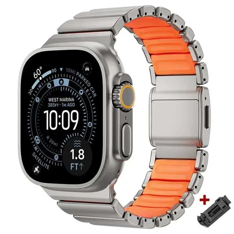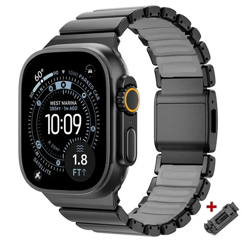 Luxury Titanium Rubber Strap For Apple Watch 49mm 46mm 45mm 44mm Magnetic Ban...