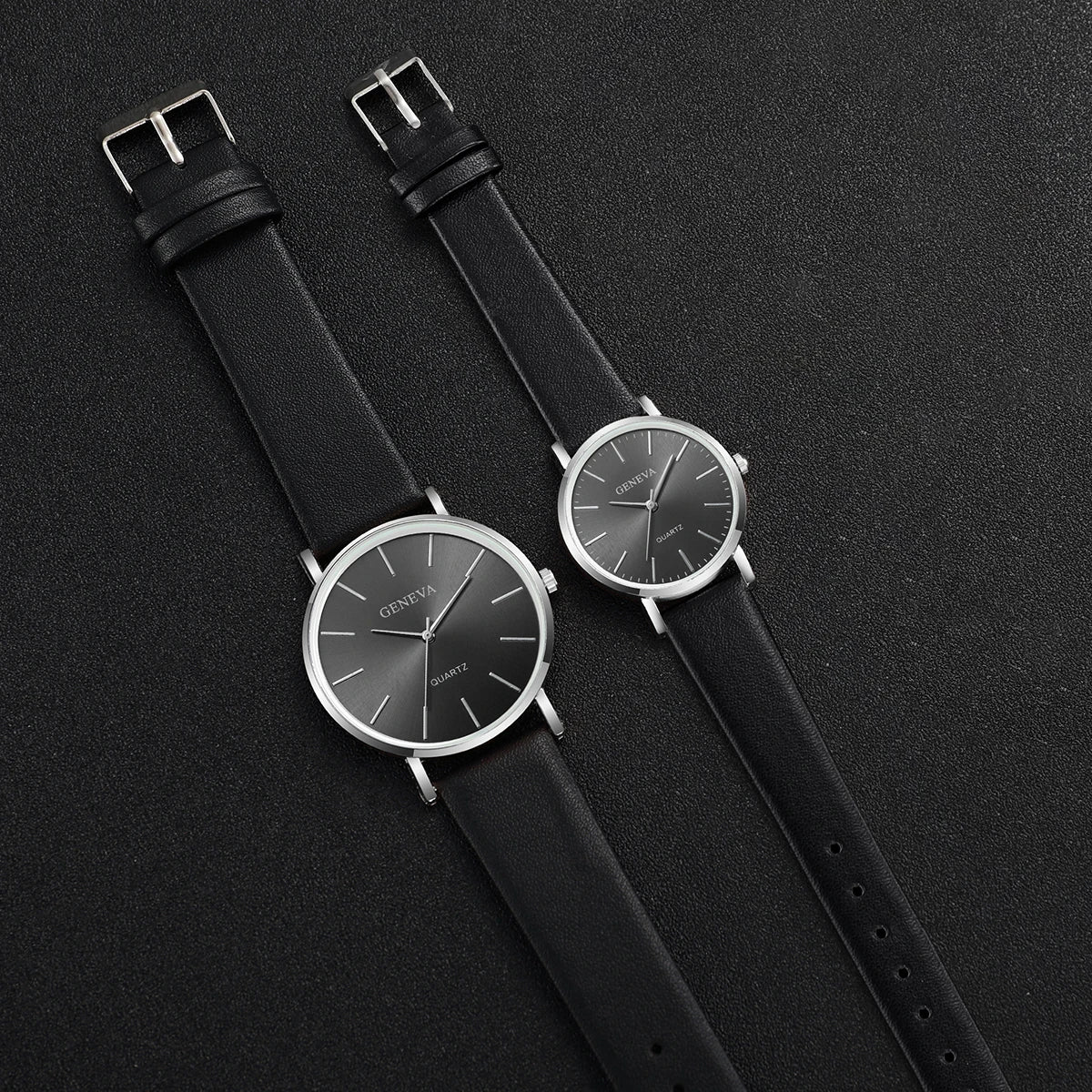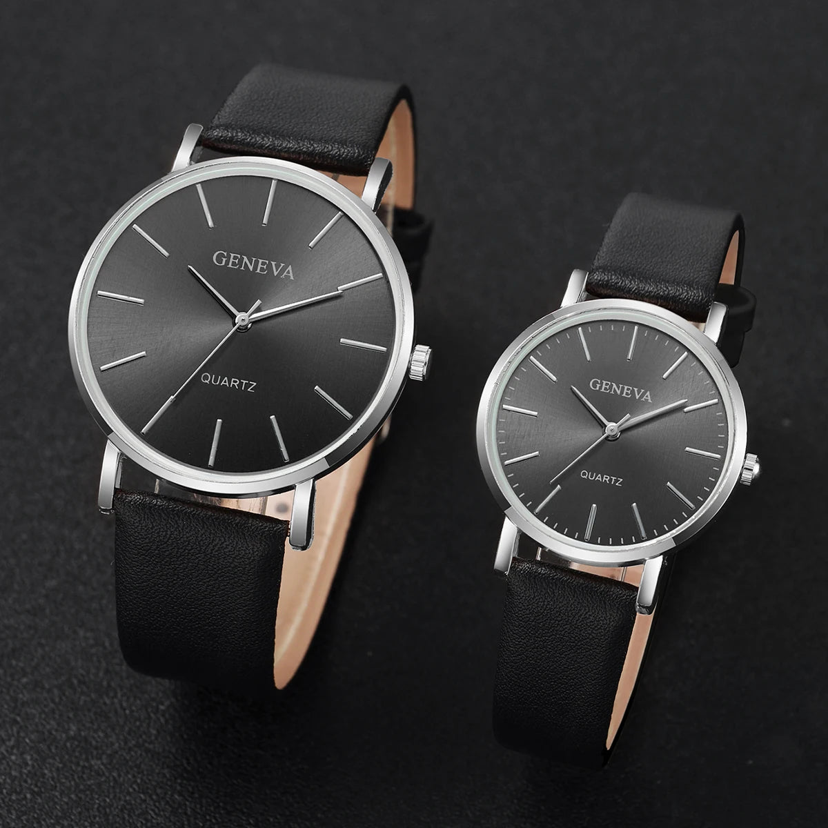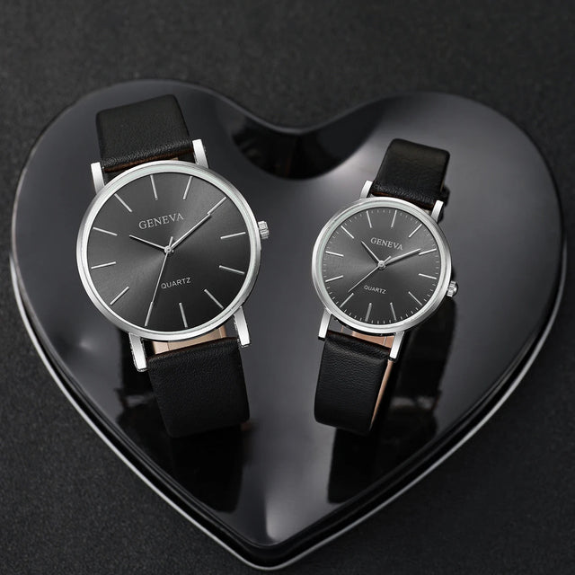 2PCS Couple Watches Simple Scale Dial Men's Quartz Watch Women Leather BandWristwatches