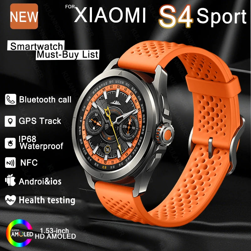 New For Xiaomi S4 Ultra Smart Watch Men AMOLED Outdoor Sports NFC GPS Compass Heart rate Waterproof Bluetooth Call Smartwatches: 2025 New Watch NFC S4 Sport Version Blood Oxygen Heart rate Compass Waterproof Smart Watch GPS Tracking Smartwatch Men Women