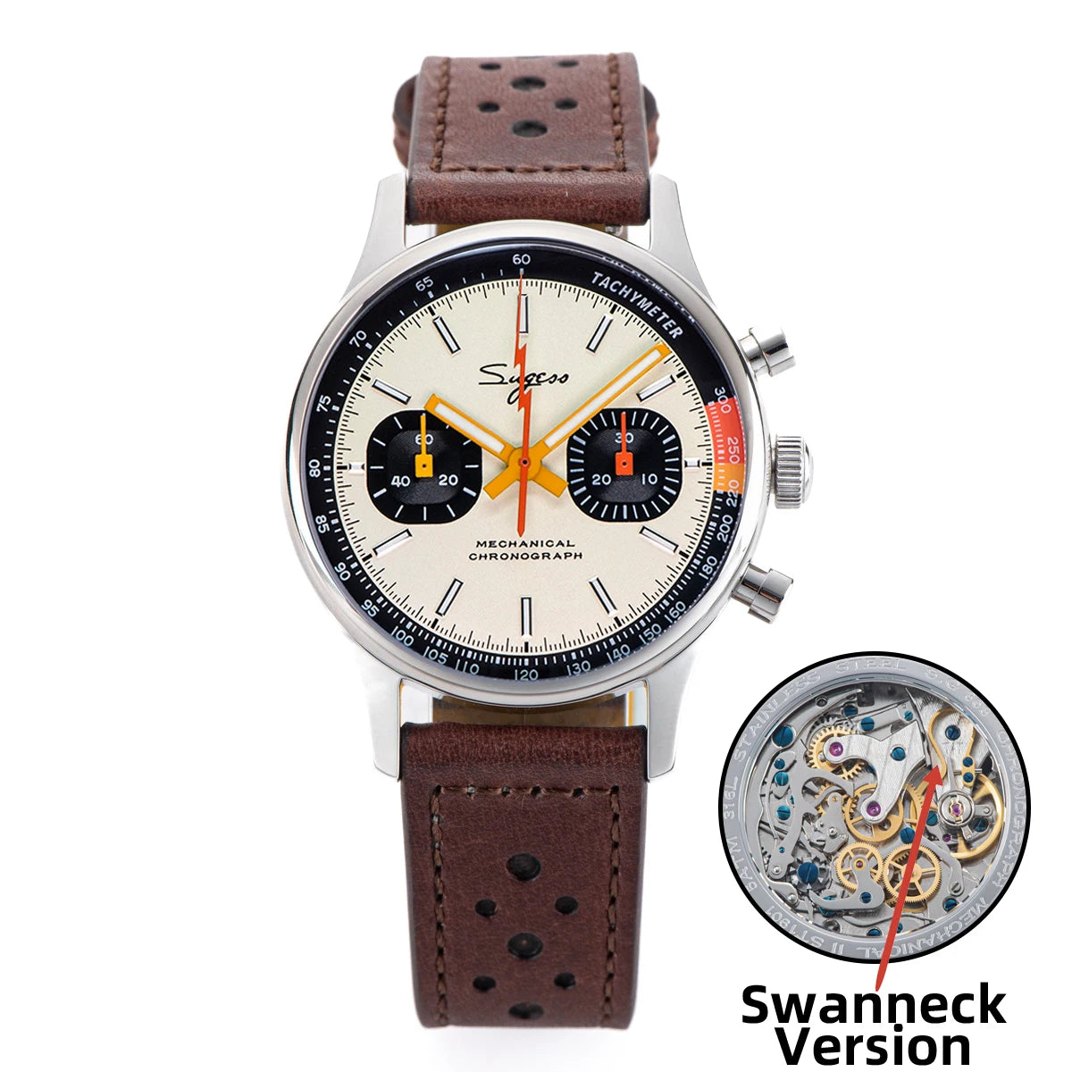 Sugess Watch of Men Chronograph Mechanical Wristwatches with Seagull ST19 Swanneck Movement Pilot Sapphir...