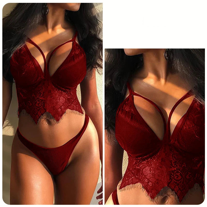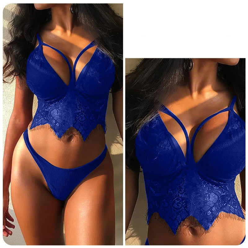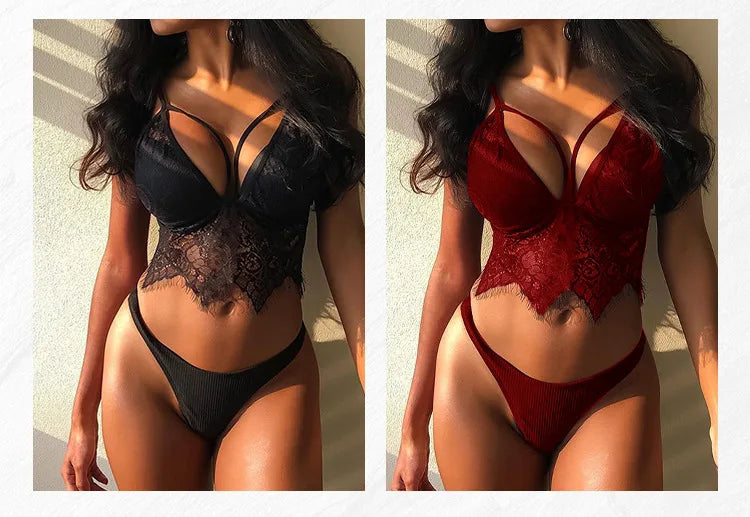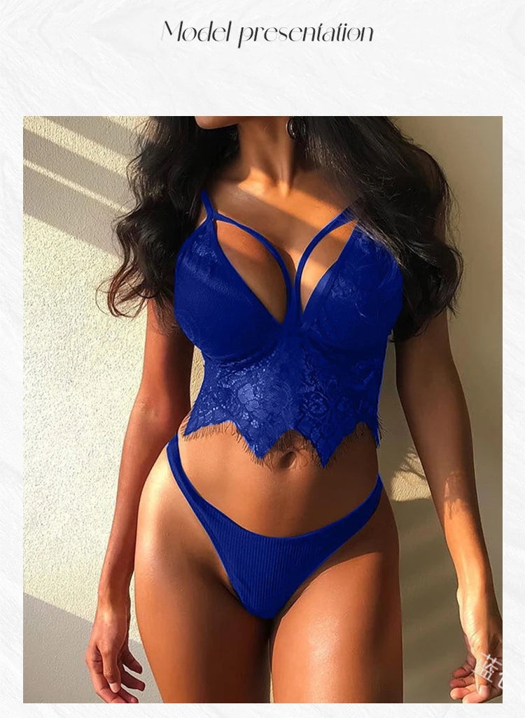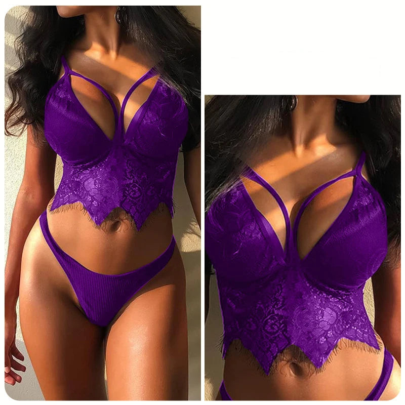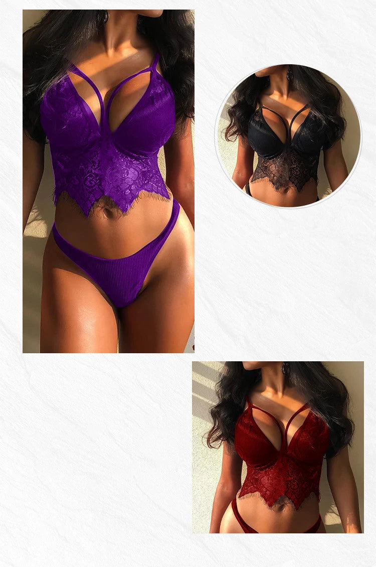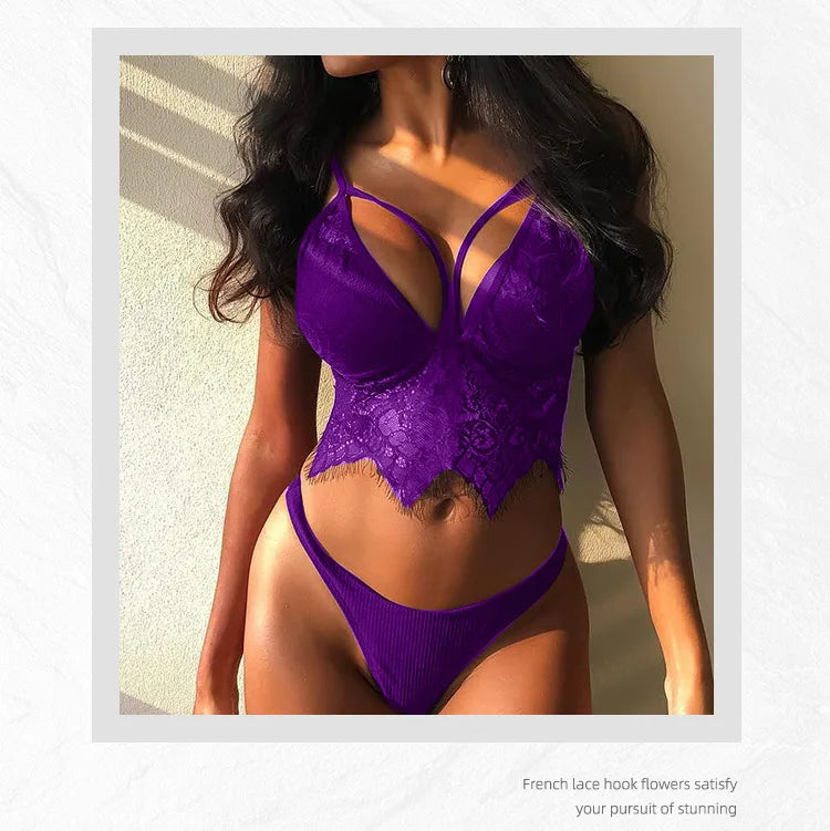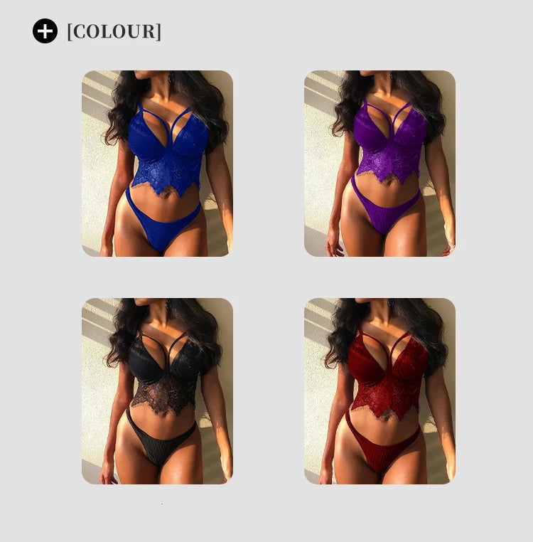 2025 Sexy Women's Underwear New Temptation Four Color Lace Three Point Bra Strap Set Ultra Thin Triangle Cup Fashion Sleepwear